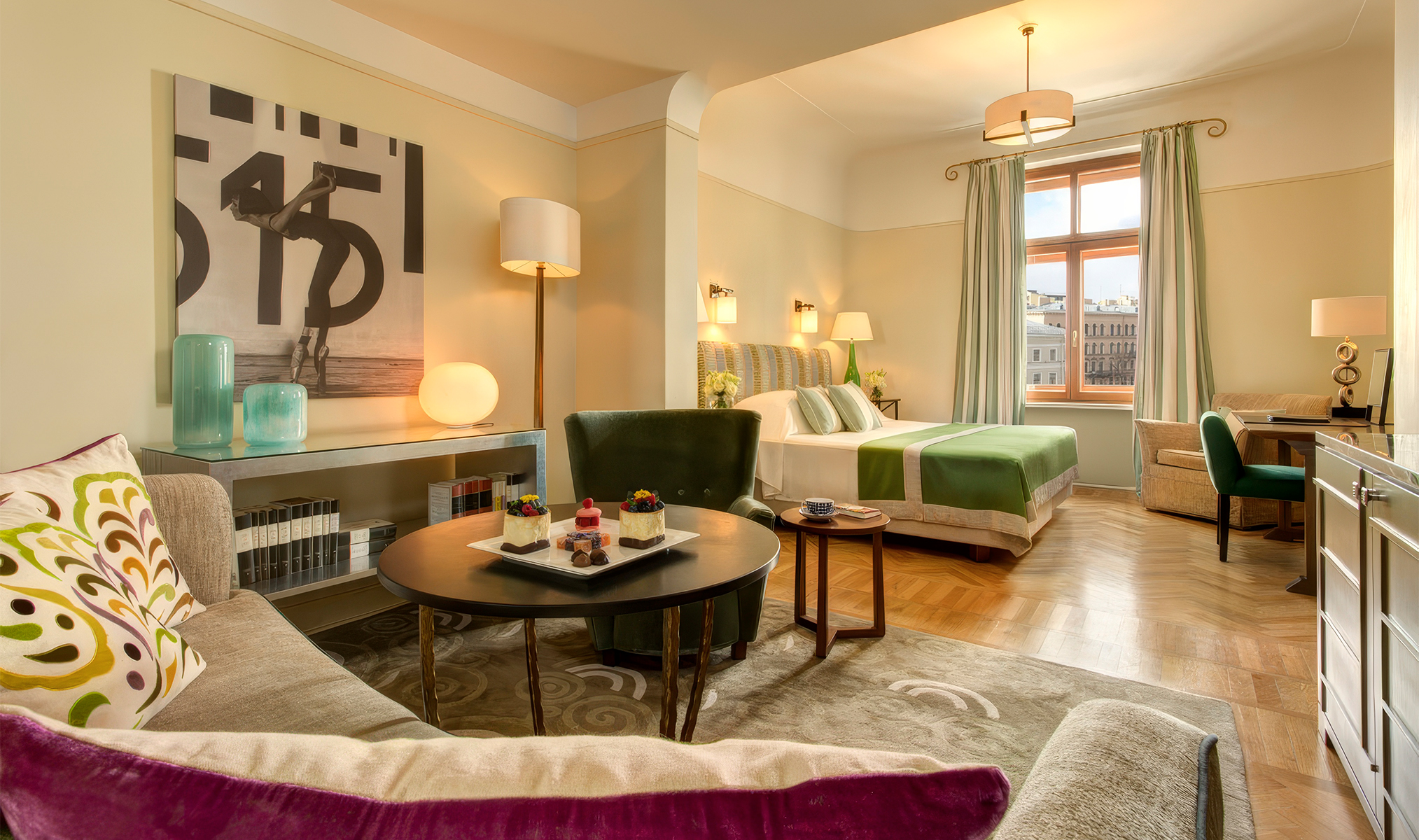 Любимица балерин, модельеров и музыкантов: атмосферой роскоши здесь наслаждались Айседора Дункан, Rolling Stones, Rammstein, Мадонна, Лучано Паваротти и Ив Сен-Лоран. Номера с видом на Исаакиевский собор заставят трепетать сердца даже искушённых путешественников.