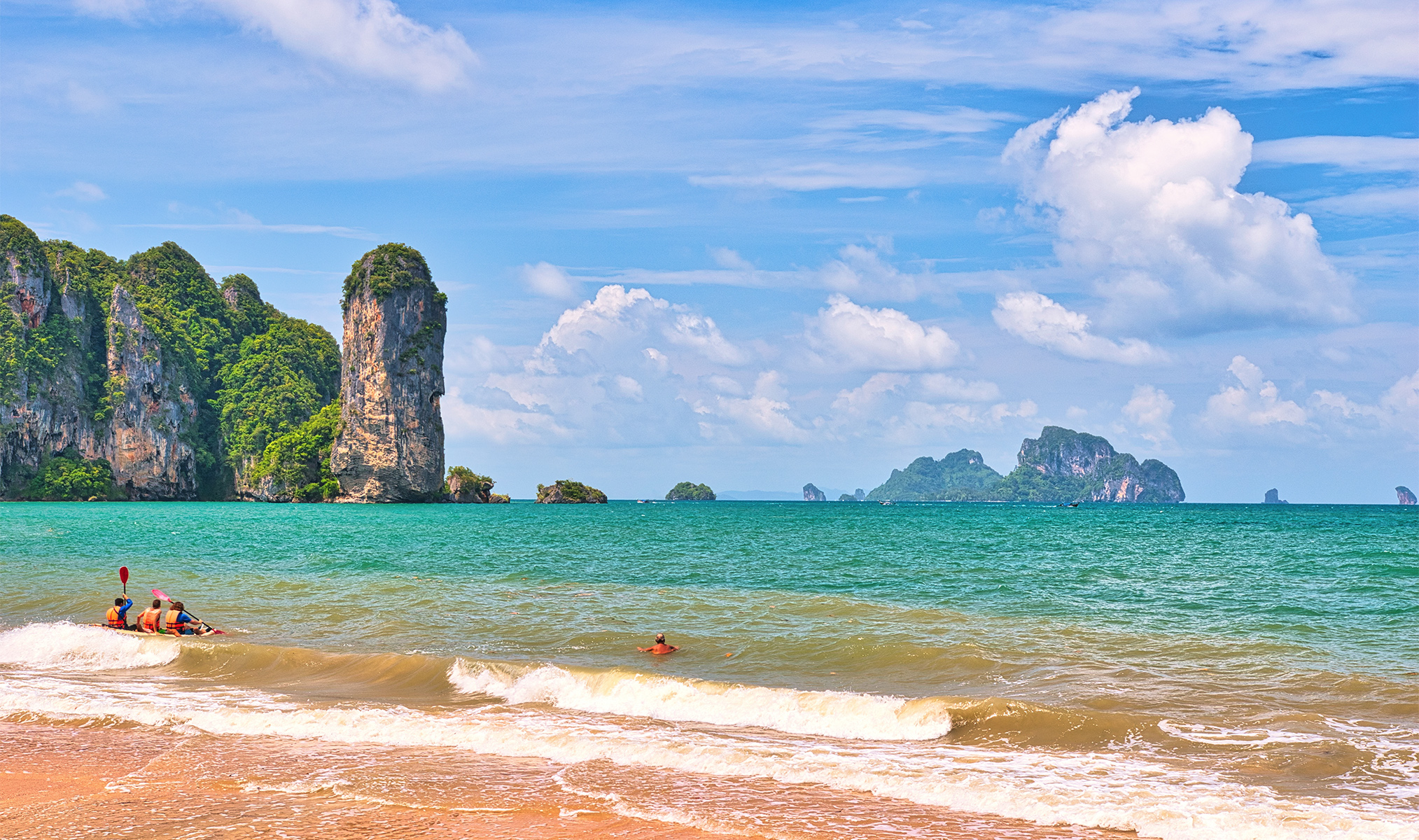 - Отправиться на водную экскурсию на длиннохвостой лодке по соседним пляжам и островам — обычно в программу включают Рейли, острова Ко Пода, Ко Туп и Куриный остров. Экскурсионные бюро ищи вдоль набережной и главной улицы Ао Нанга.