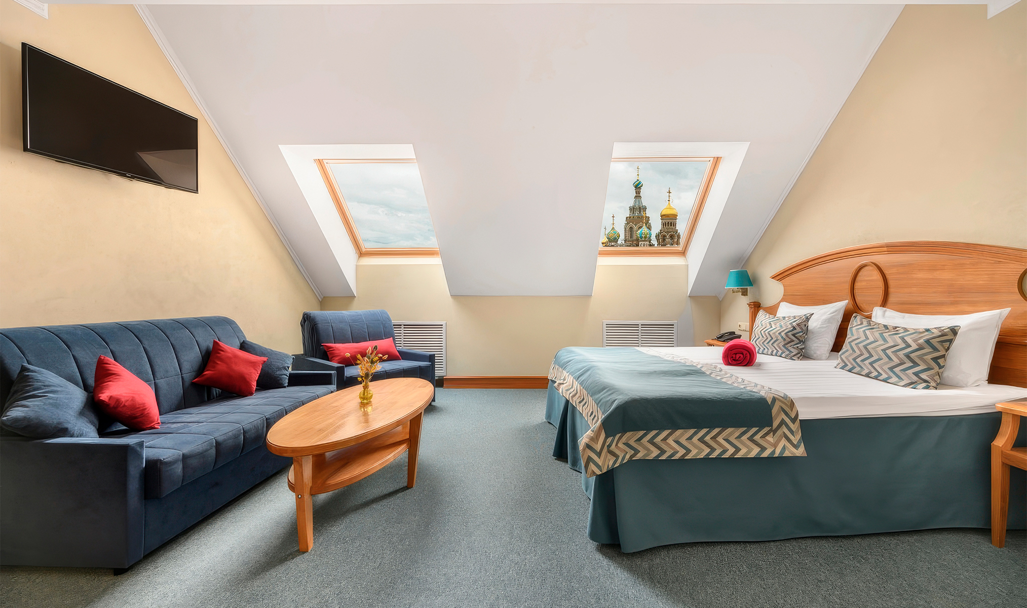 Четырёхзвёздочная гостиница в самом сердце Петербурга, рядом с главными достопримечательностями. В нескольких минутах — Михайловский замок, где расположен один из филиалов Русского музея с портретами династии Романовых, и Летний сад — идеальное место для неспешных прогулок. Из окон некоторых номеров открывается вид на Спас на Крови.
