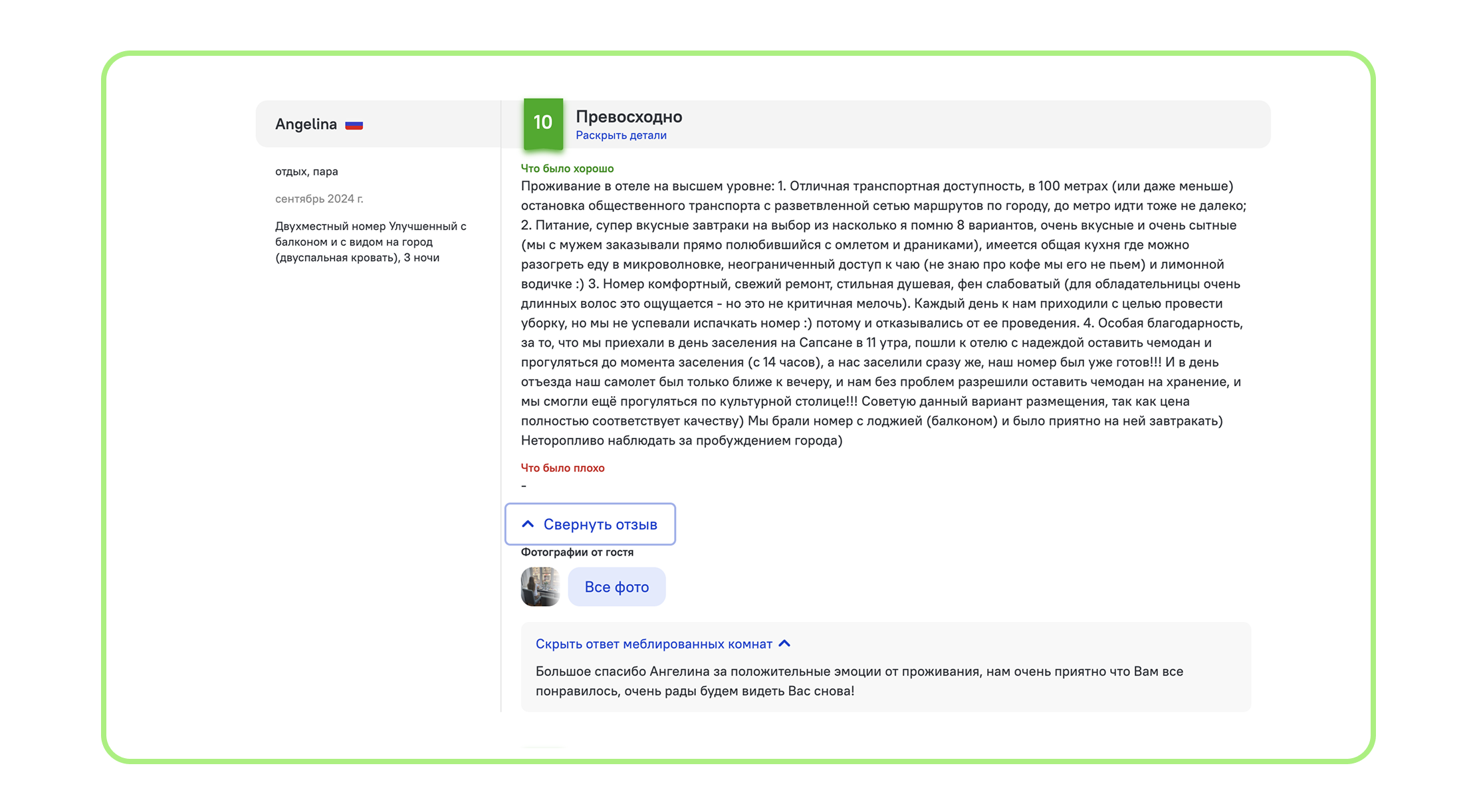 Путешественники хвалят отель за чистоту и безопасность, а персонал — за внимание и заботу.