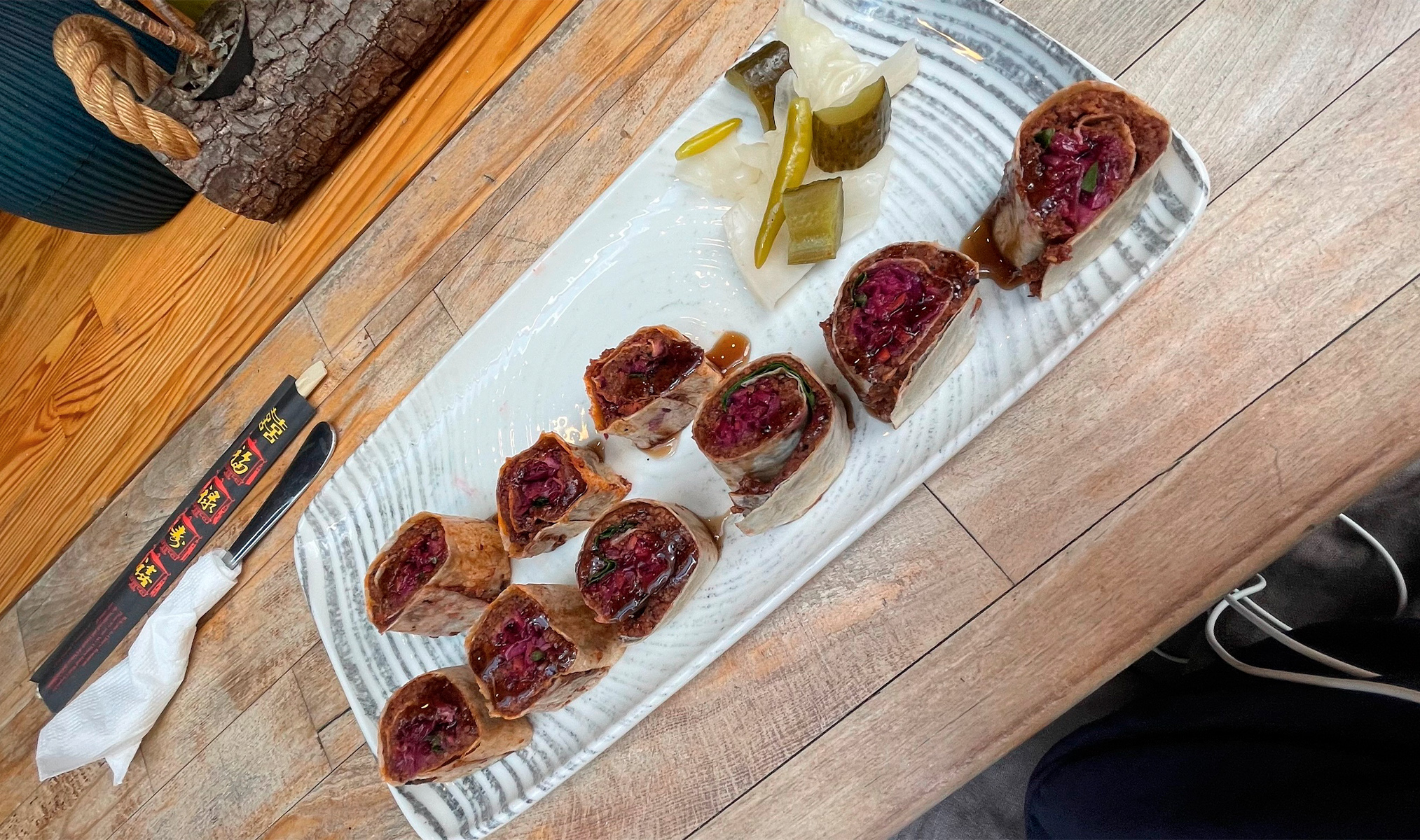 Если хочется ещё больше окунуться в турецкий фьюжн, отправляйся на самую ресторанную улицу Кадыкёя в небольшое кафе Marul — буквально с одной барной стойкой и парой стульев. Здесь на традиционное блюдо чи кёфте (çiğ köfte) взглянули с другой стороны: стали крутить из него роллы и подавать в японском стиле.