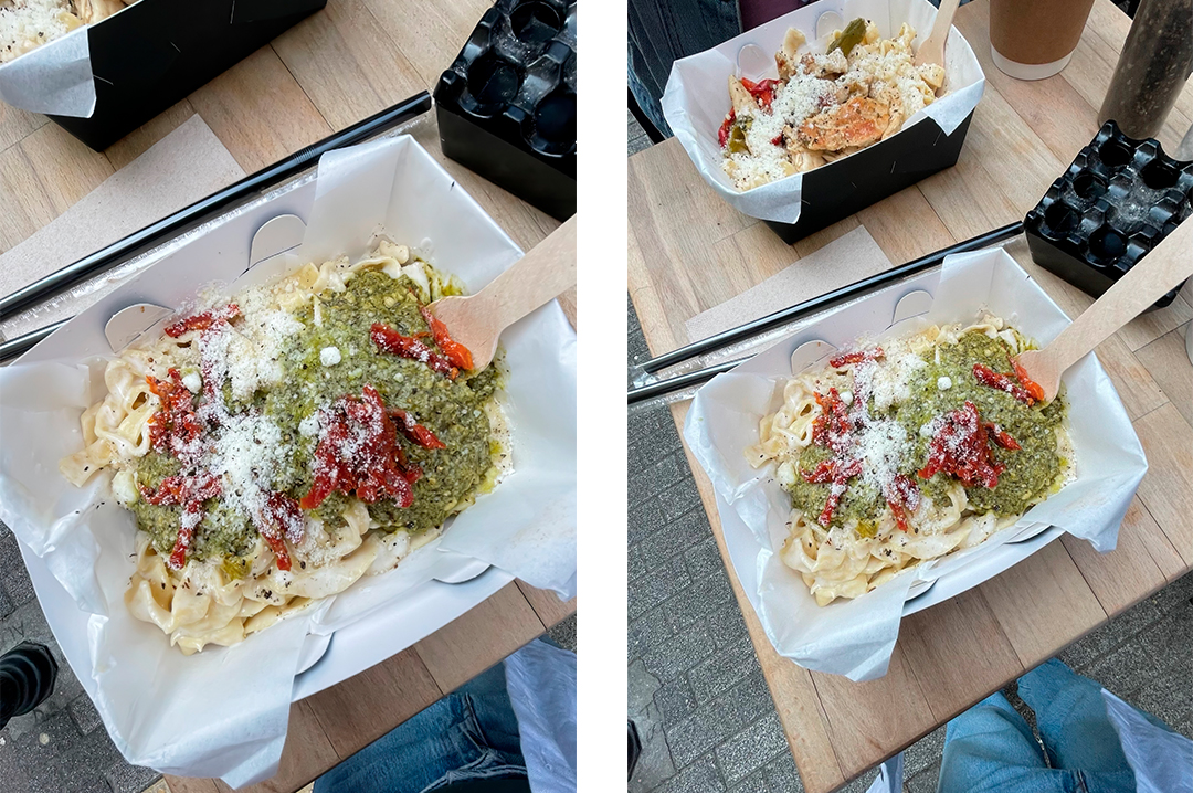 Если хочешь сытно поесть, загляни в одно из самых популярных кафе Стамбула — Say Cheese. Узнаешь его сразу: люди с коробочками пасты сидят повсюду — на ступеньках, подоконниках и прямо у входа. А если хочется поесть за столиком, загляни во второй зал — он находится на углу, рядом с уже упомянутым Marul.