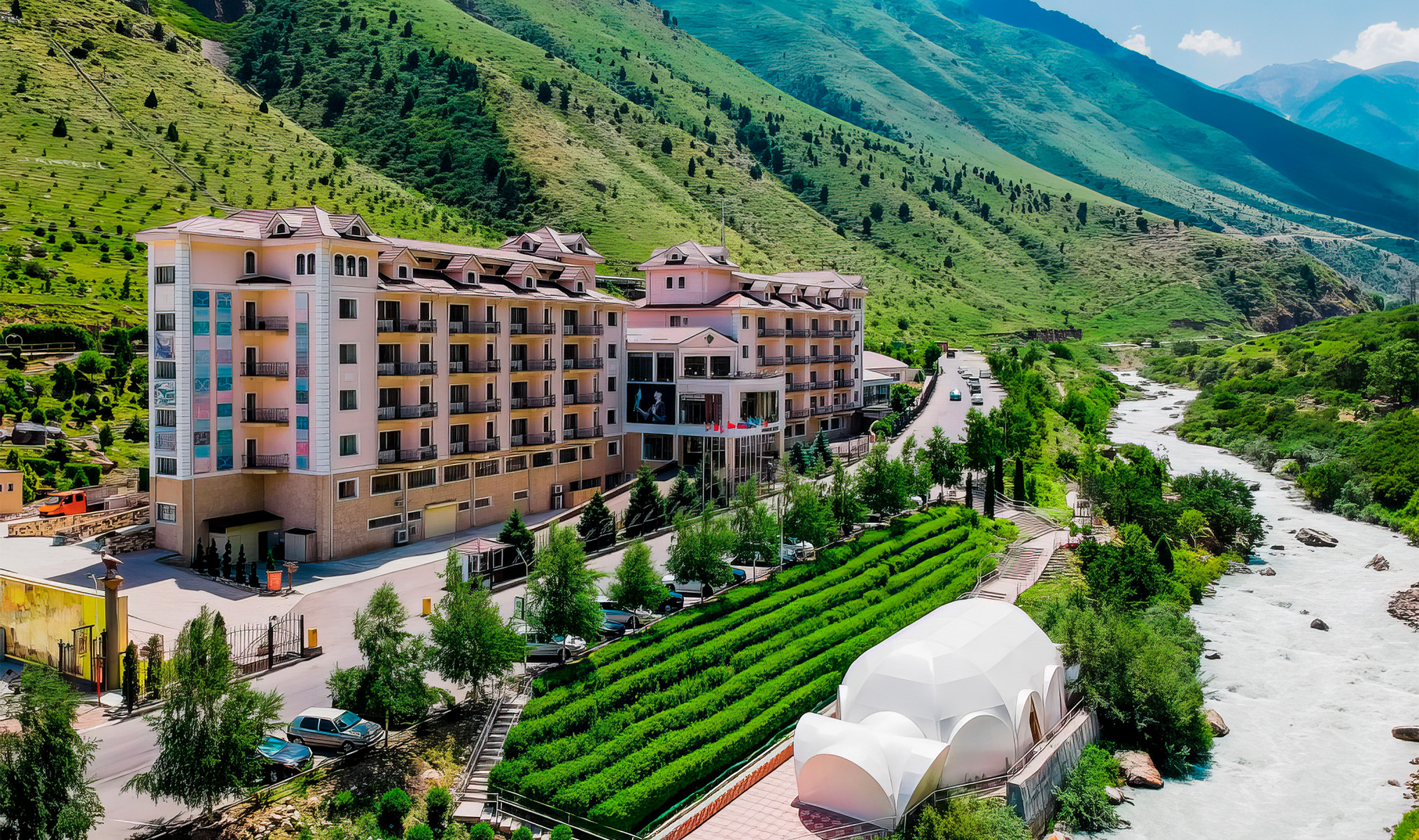 Здесь можно отправиться в конную прогулку по ущелью Чункурчак, пострелять из лука или порыбачить. Любителям хайкинга советуем сходить к подвесному мосту, откуда открываются панорамные виды на вершины. Неподалёку можно увидеть Голубиный водопад. После прогулки награди себя отдыхом в бане или фитобочке под открытым небом.