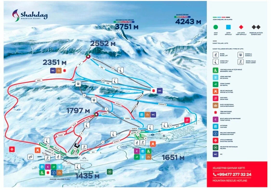 В общем, если хочешь избежать встреч с неуправляемыми лыжниками — спасайся на пустых трассах Шахдага. Бонусом получишь классные виды, современные подъёмники и знакомство с азербайджанской кухней.