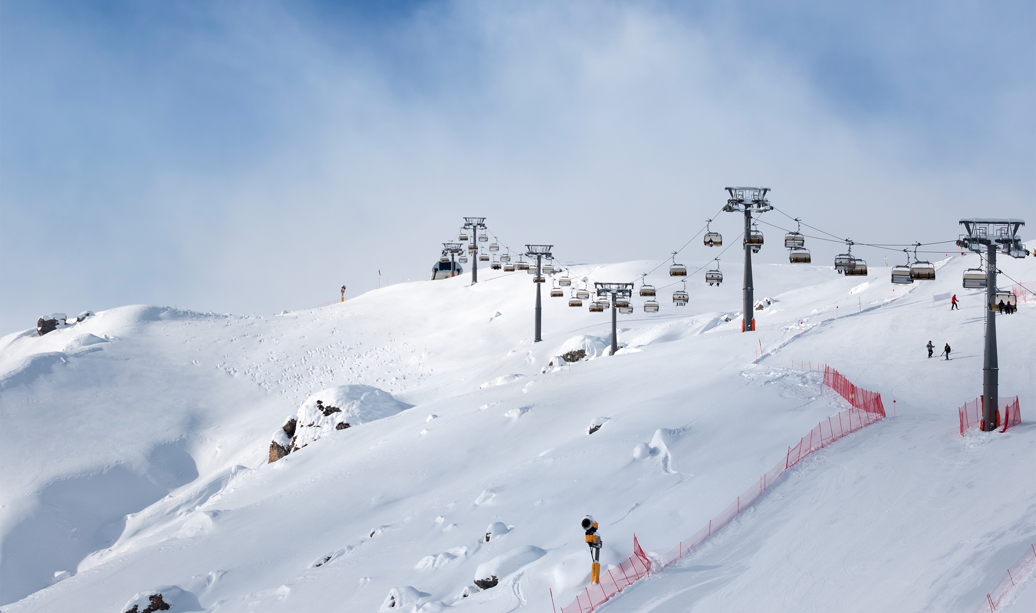 Пропускная способность курорта — 25 000 лыжников в час. Для сравнения: это как если бы на склонах разом высадились пассажиры 113 «Боингов-737». Разумеется, столько людей каждый день сюда не приезжает — а значит, стоять в очереди к подъёмнику, как в Красной Поляне или Шерегеше, тебе не придётся.