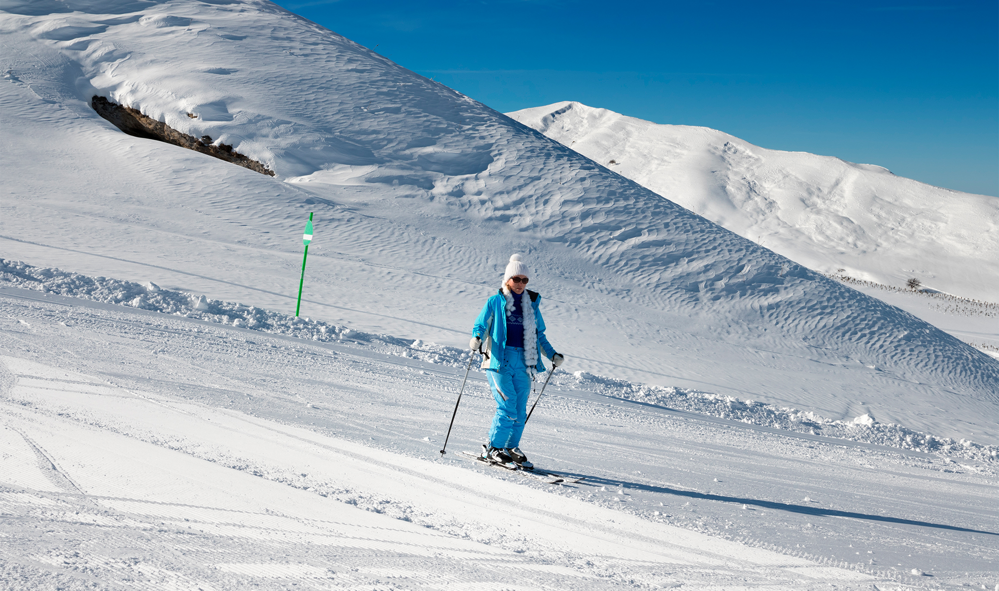 Ложка дёгтя в бочке мёда. Скажем прямо: фрирайда в Шахдаге нет, даже чтобы чуть-чуть попробовать. Искусственный снег за пределы трасс не напыляют, а естественного выпадает слишком мало, чтобы укрыть все булыжники, и его быстро выдувает ветер. За пределами подготовленных склонов — только лысые горы и торчащие камни, так что оставляй свою ласточку под пухляк дома.