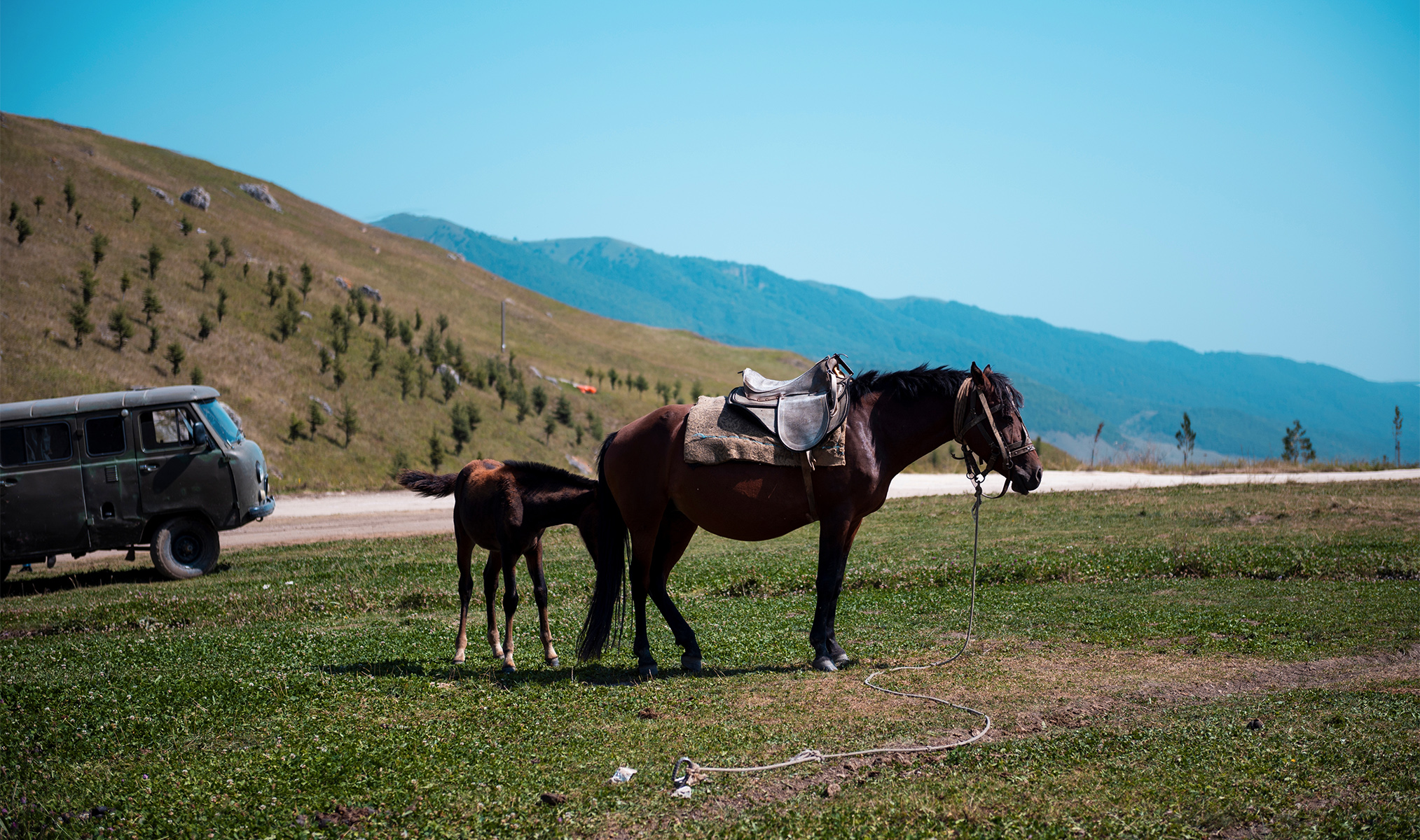 - Лошадки! Неторопливая конная прогулка по горам — верный способ отыскать радость жизни без риска для здоровья.