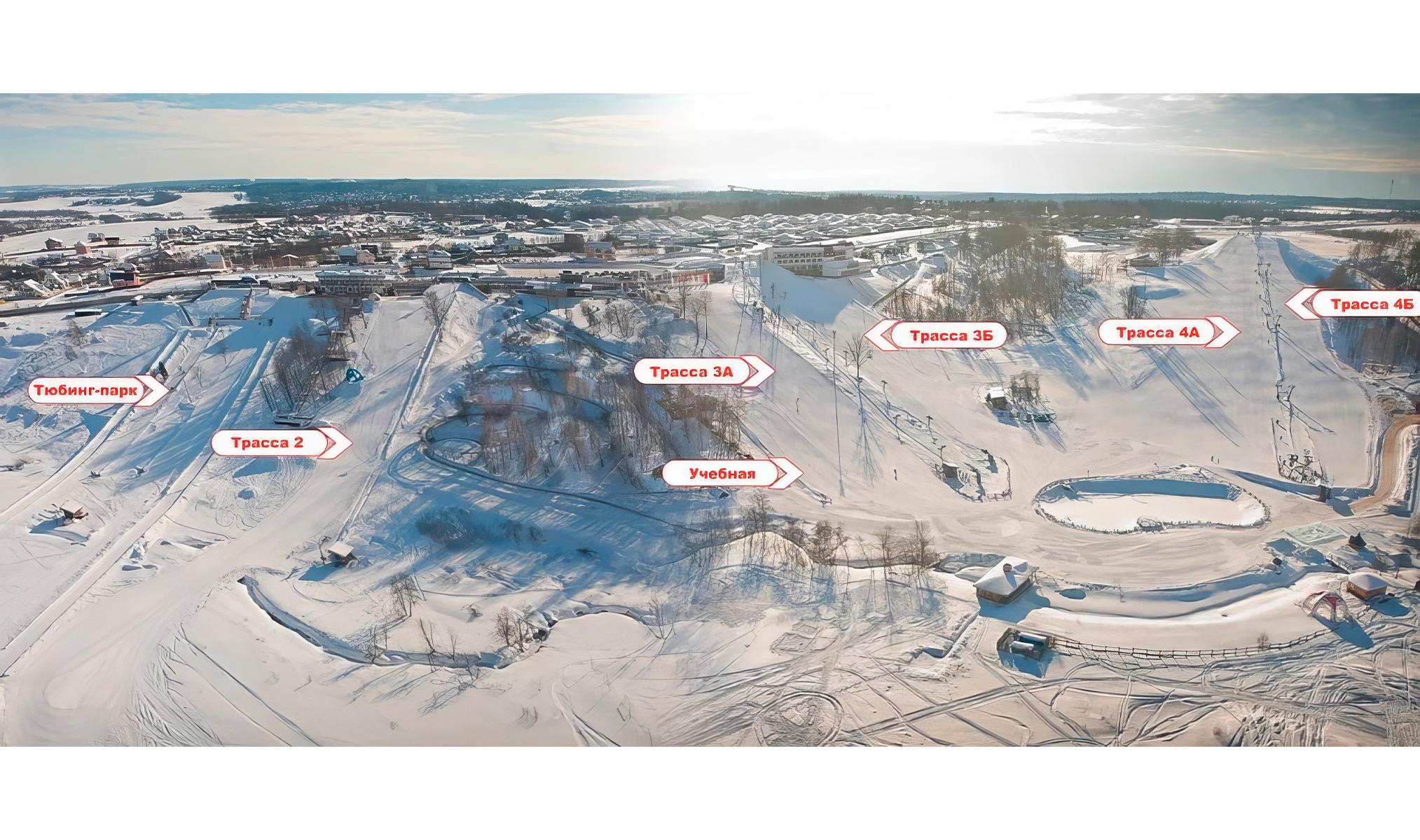 Трассы. Шесть линий разного уровня сложности с максимальной длиной 600 метров и перепадом высот до 60 м, есть отдельная учебная трасса.