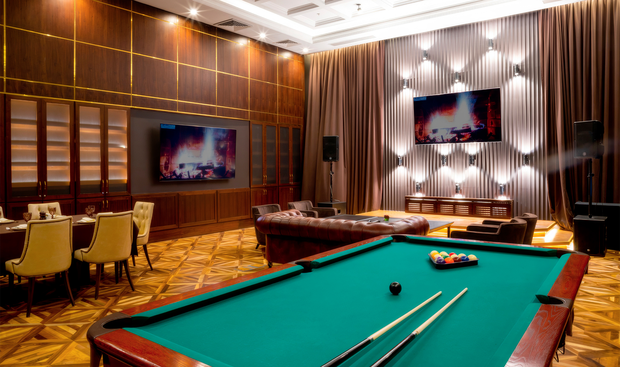 Что нужно горнолыжнику после целого дня на склоне, когда жалко тратить время на обед? Правильно: вкусный и щедрый ужин. Гости отеля в любое время дня и ночи могут подкрепиться в панорамном ресторане GATSBY, где подают блюда европейской и кавказской кухни. Браво, если потом хватит сил дойти до спа-комплекса — он общий с отелем Rixos, даже на улицу выходить не придётся.