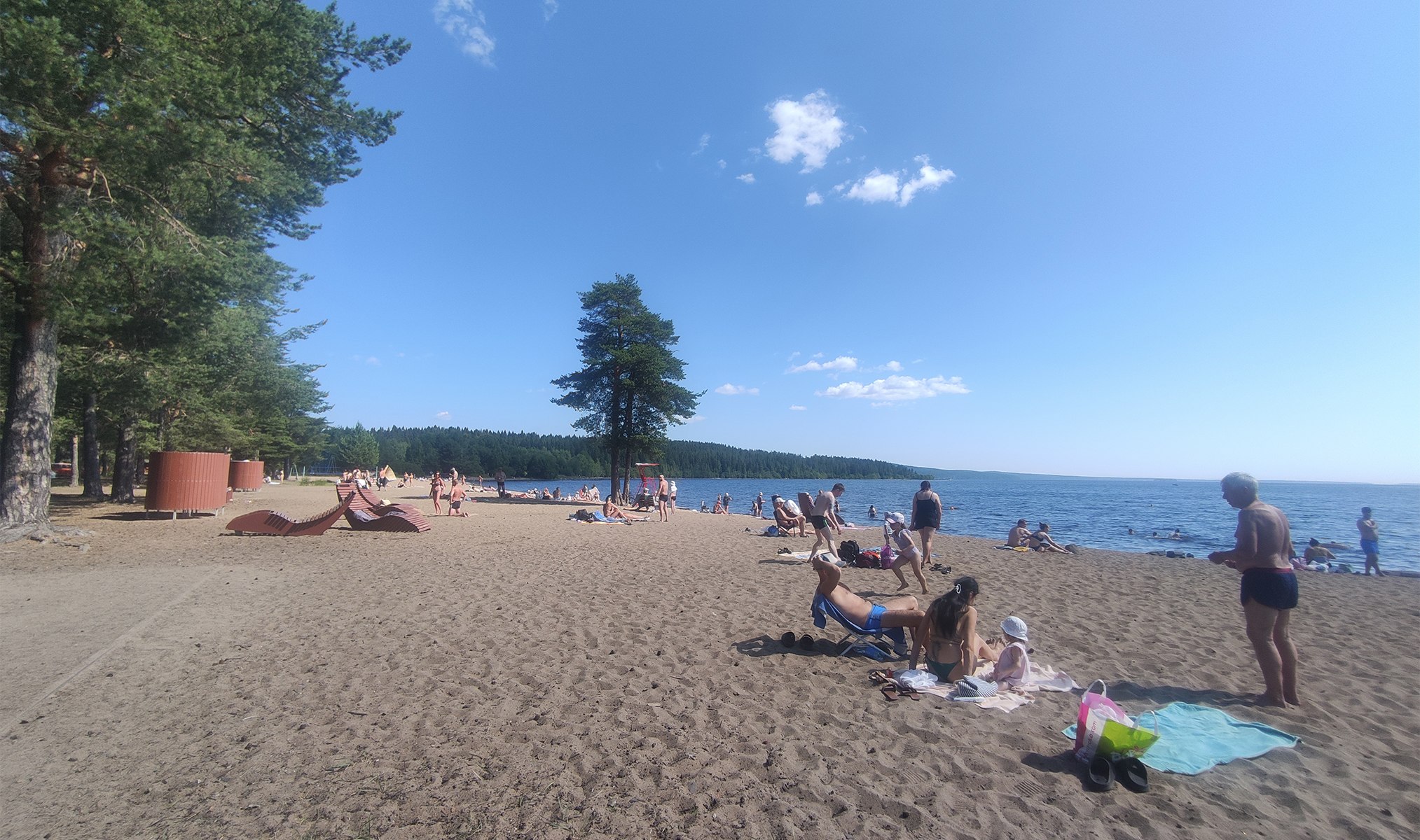 Так что мы и по Петрозаводску погуляли, а затем у нас вроде как загородный отдых в этом домике получился. И не только он: погода стояла отличная, поэтому вечер и утро мы провели на пляже Онежского озера. Оказывается, в Петрозаводске прекрасные песчаные пляжи. Народу не так много. А вода в Онежском озере приемлемая для купания.