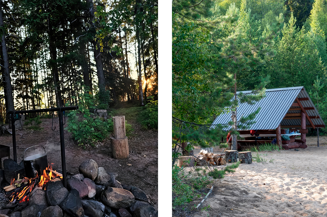 Водлозеро находится на территории национального парка, а это значит, что необходимо разрешение на посещение. Устраивать стоянки и разводить костры разрешено только в специальных местах, и забронировать их нужно заранее на официальном сайте нацпарка. С одной стороны, это ограничения, но с другой — удобно: на каждой стоянке есть оборудованный туалет, стол и скамейки, контейнер для мусора и дрова. За стоянками следят и убирают, и если место за тобой, никто на него претендовать не имеет права.