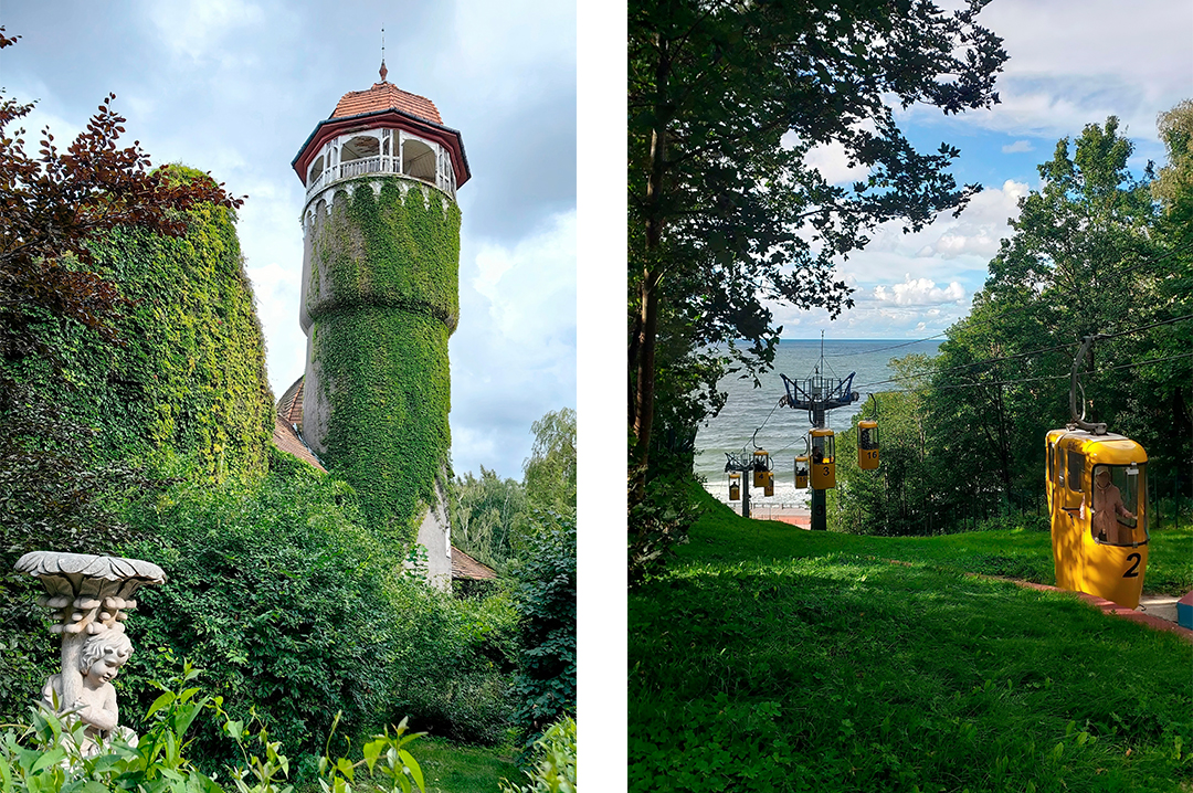 Светлогорск — яркий курортный город с восхитительным зданием грязелечебницы и ужасно милой канатной дорогой к морю. Рельеф у города холмистый, вся внутренняя часть утопает в деревьях. Дышится здесь восхитительно.