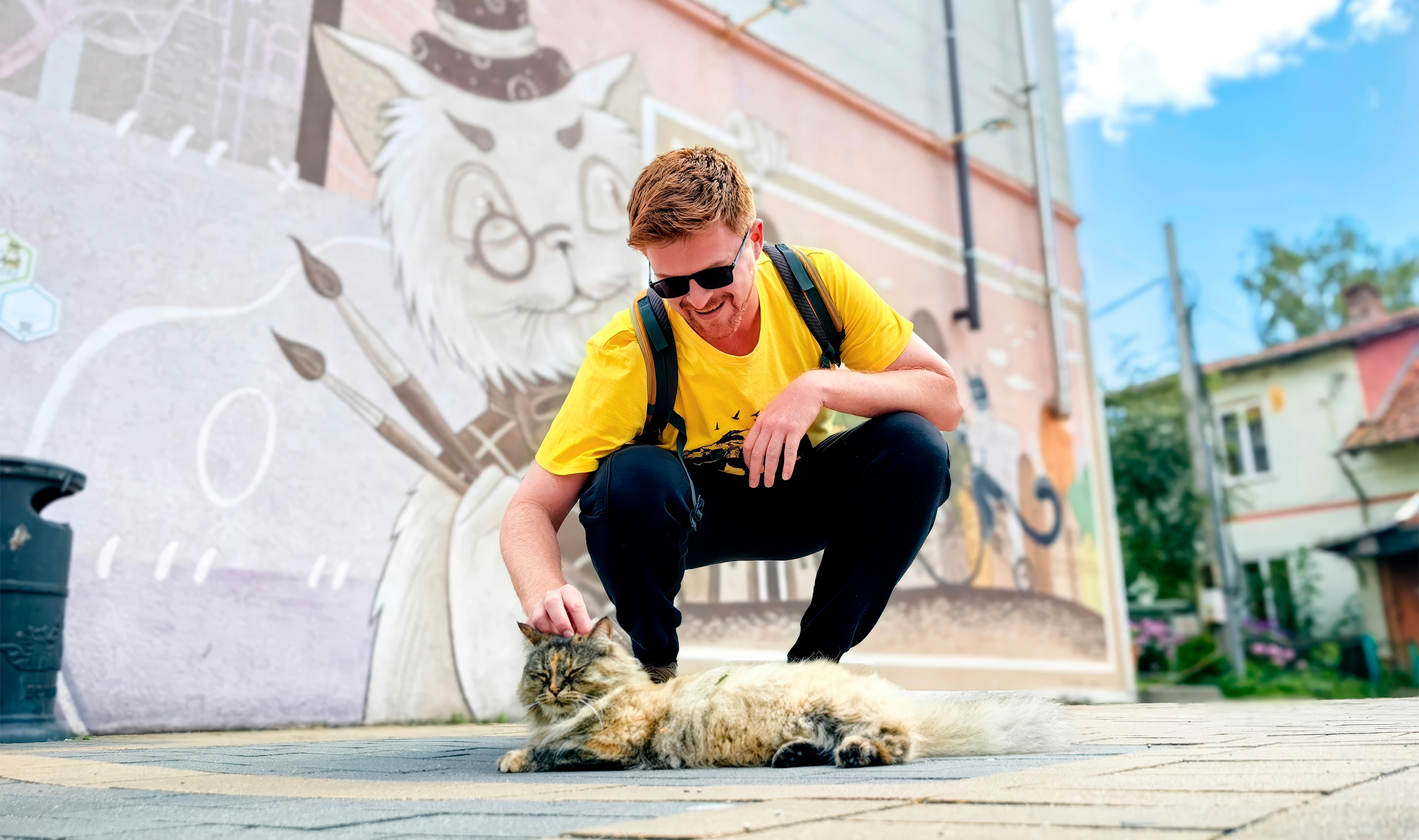 Живых пушистых красавцев дополняют искусственные — в городе много огромных кошачьих муралов. Даже в названиях и экстерьере заведений доминирует тема местных кошек.