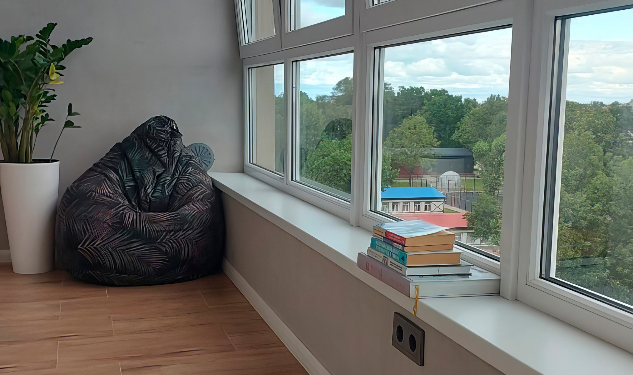 Огромный балкон с креслами-мешками стал постоянным местом досуга.