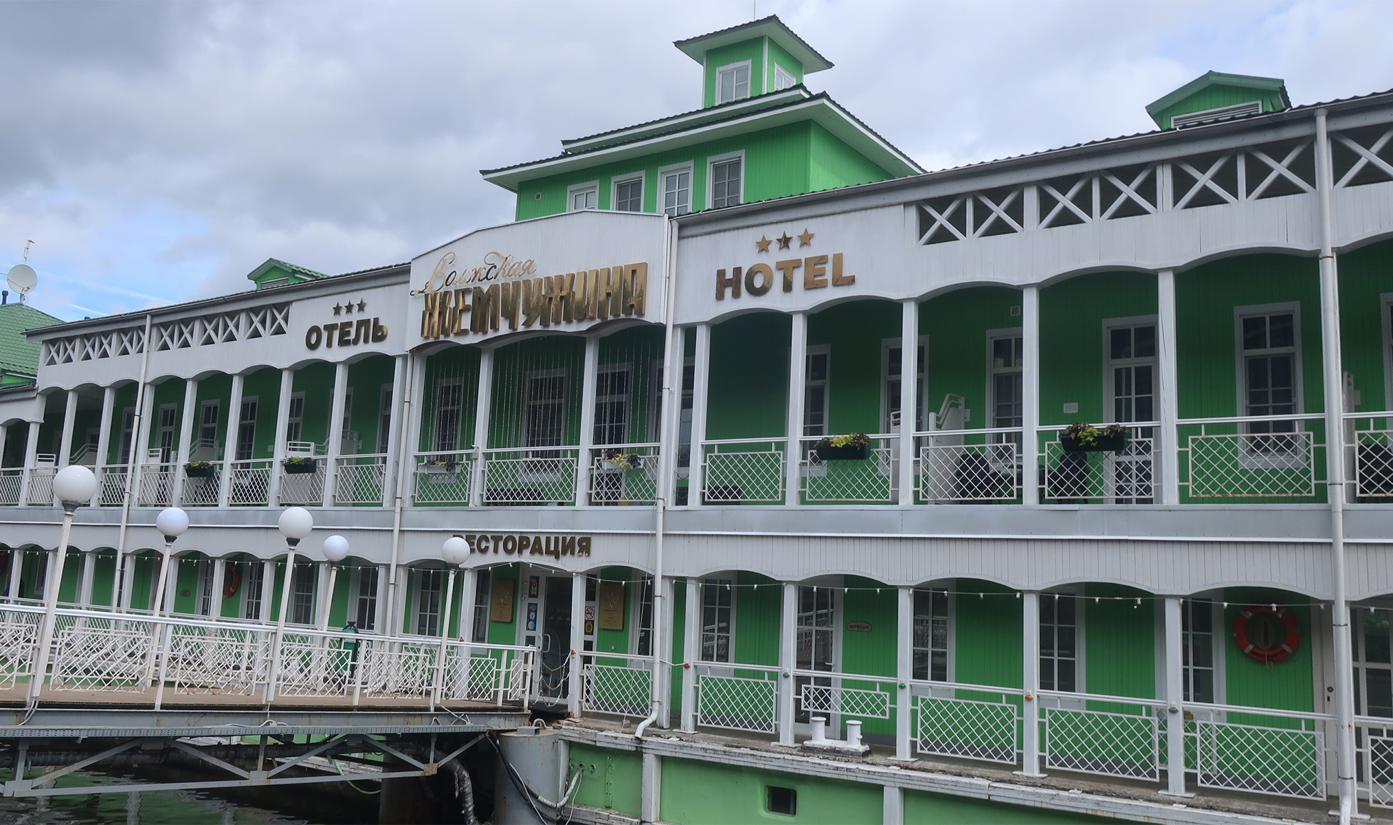 Прокатились по Волге, погуляли по набережной. Набережная Волги в Ярославле имеет знаковое место — плавучий отель. Его можно часто видеть в разных фильмах, например, в «Жестоком романсе».