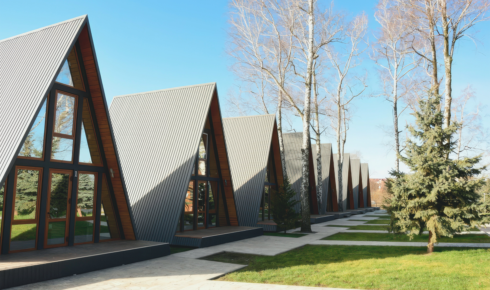 - Кемпинг «Атмос» с деревянными А-фреймами, ухоженной территорией и банькой.