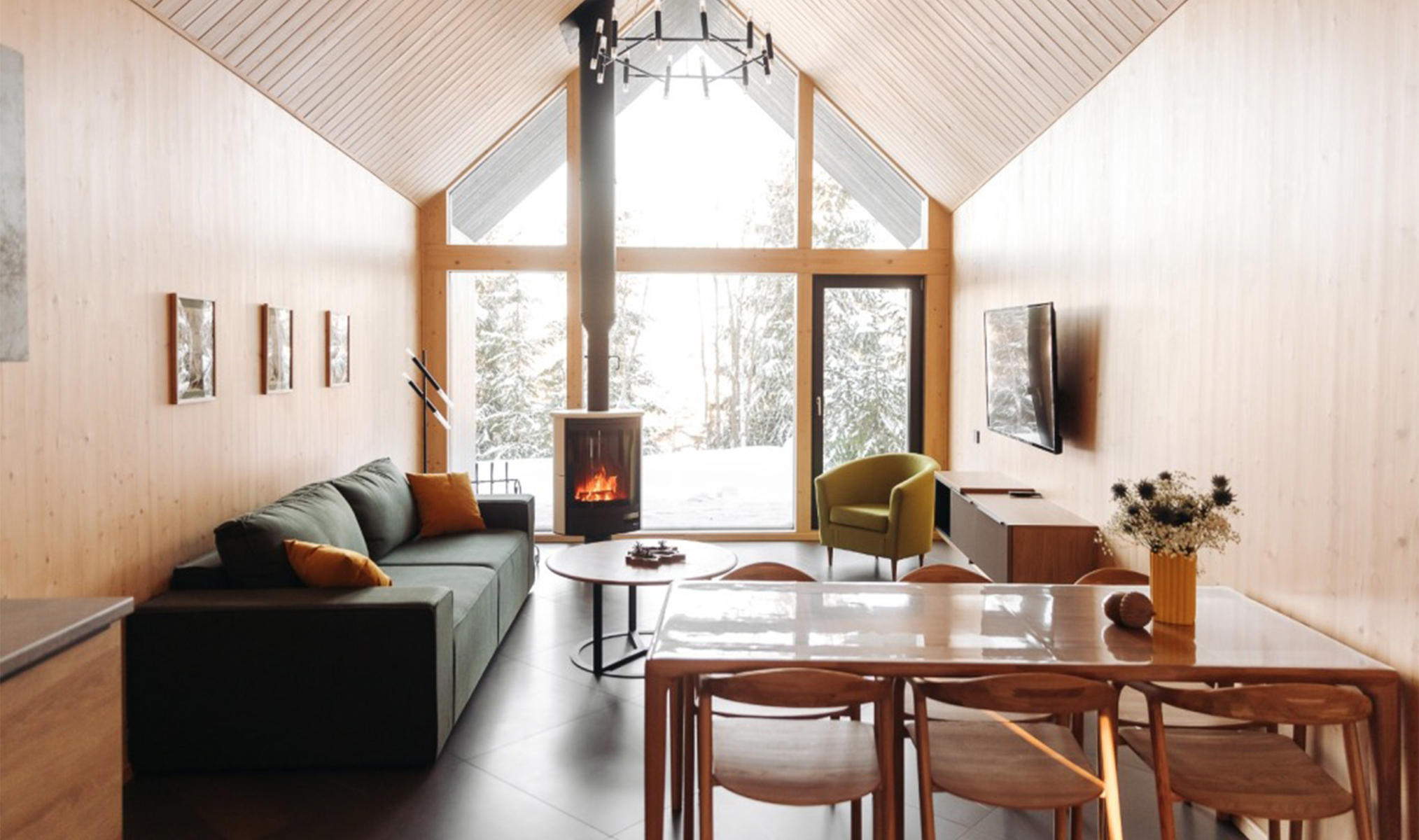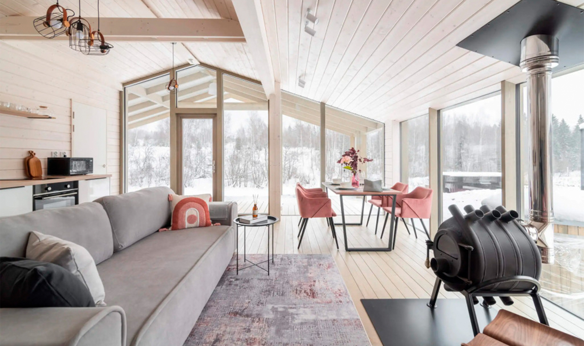 - А-фреймы, барнхаусы и домики на пару человек идеальны, если хочется отметить Новый год в романтичной атмосфере.