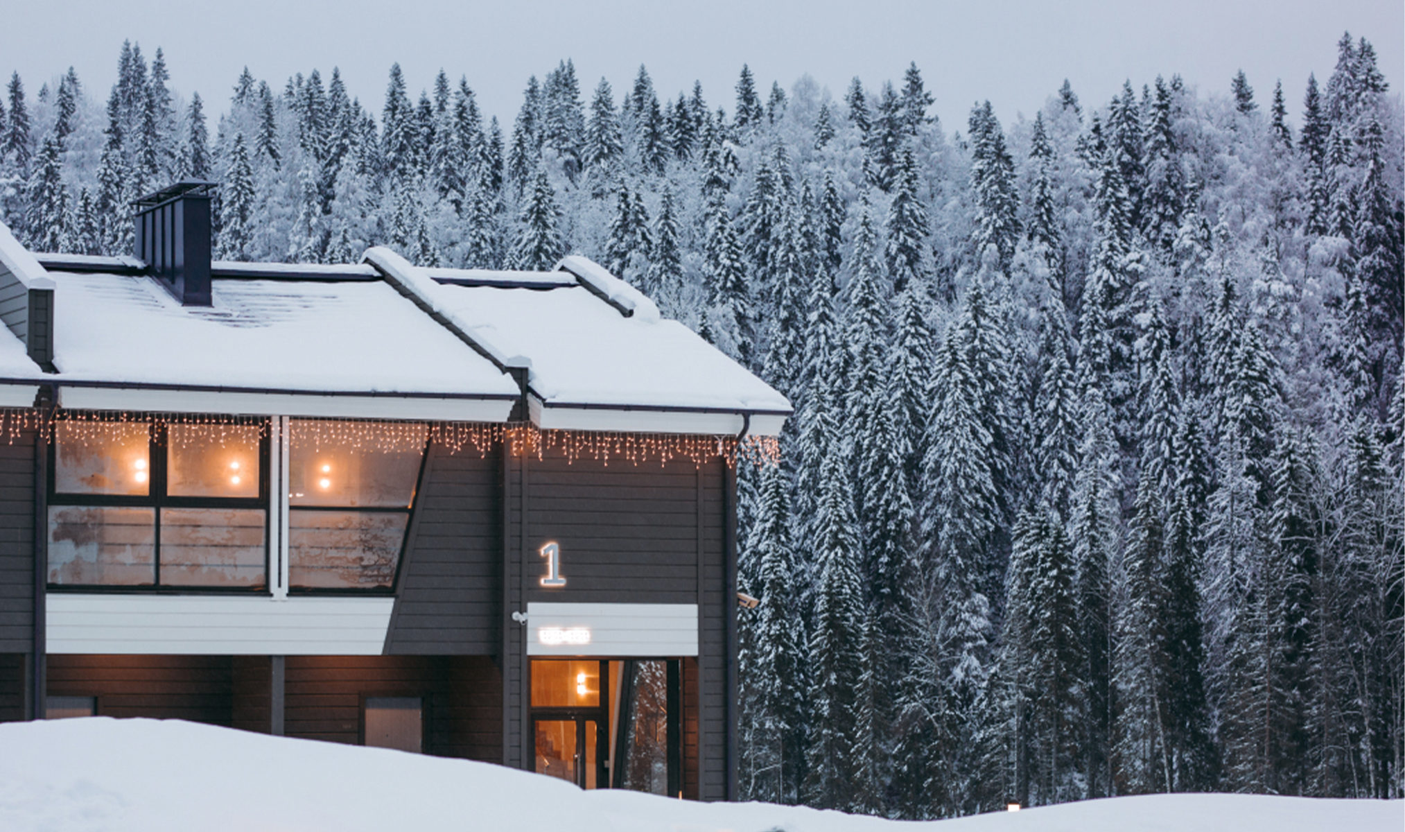После катания советуем погреться в панорамной сауне на скале, а затем устроить посиделки в лобби-баре с видом на лес и озеро Пюёрялампи с любимыми напитками.
