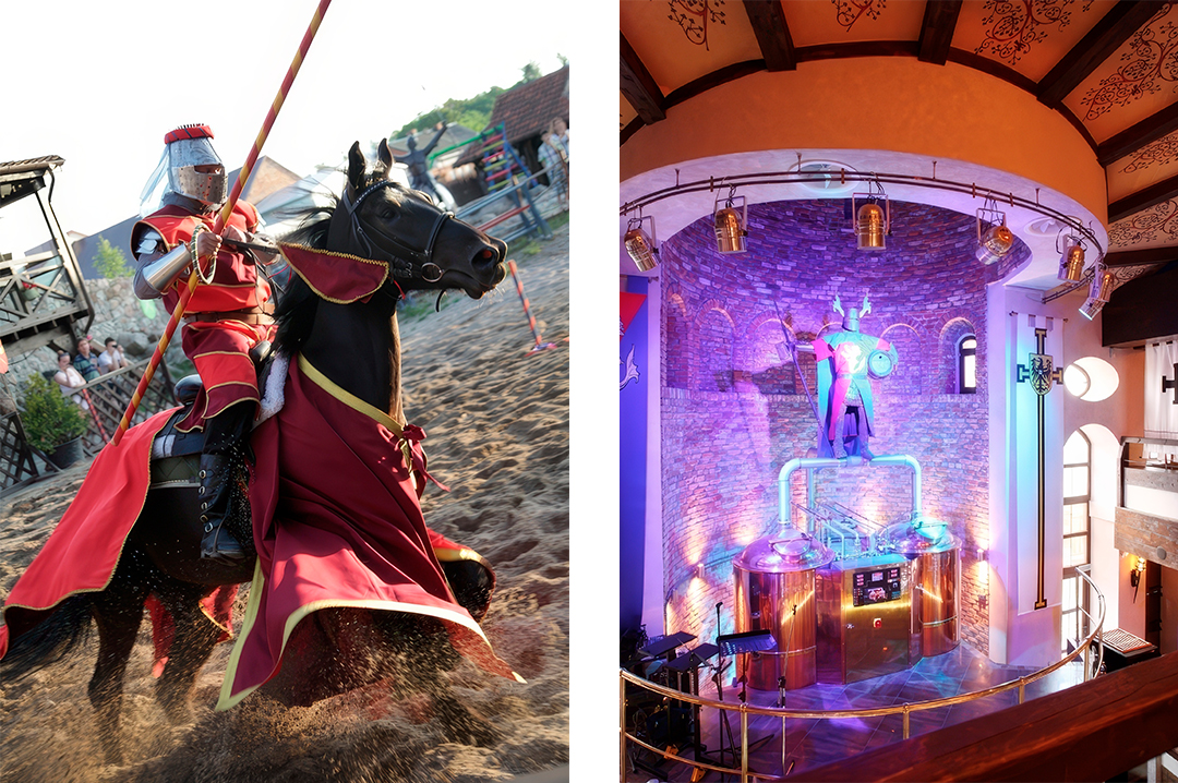 Приятное дополнение к шоу — пиво из собственной пивоварни, за процессом варки можно понаблюдать из внутреннего дворика со стеклянной крышей. Завершить вечер рекомендуем ужином под живую музыку в замковом ресторане — с рыцарскими стягами, вестфальскими колбасками и свиной рулькой.