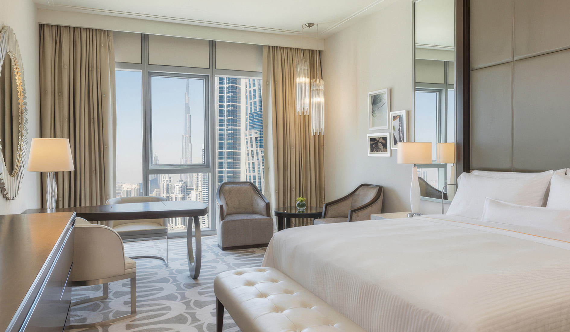 А из нашего окна Бурдж-Халифа видна! Так выглядит один из номеров в Hilton Dubai Al Habtoor City.