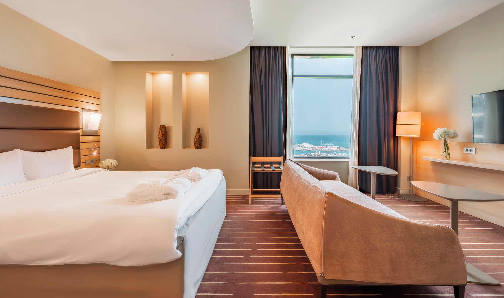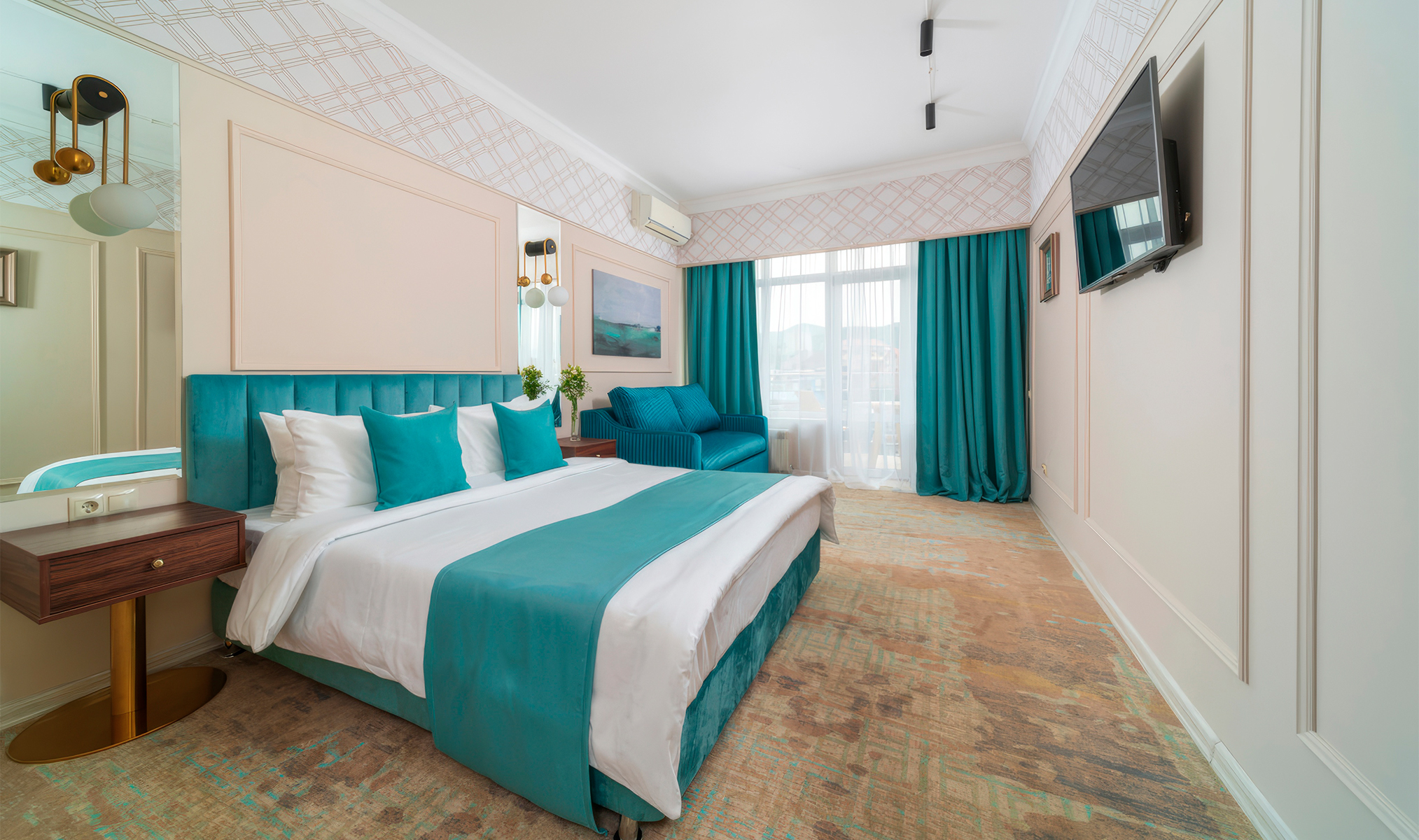 «Четыре звезды» для тех, кто хочет жить в курортном центре города: рядом морской порт, зимний театр, множество заведений и собственный пляж отеля. На территории расположены спа-центр с хаммамом, фитнес-зал и детская комната.