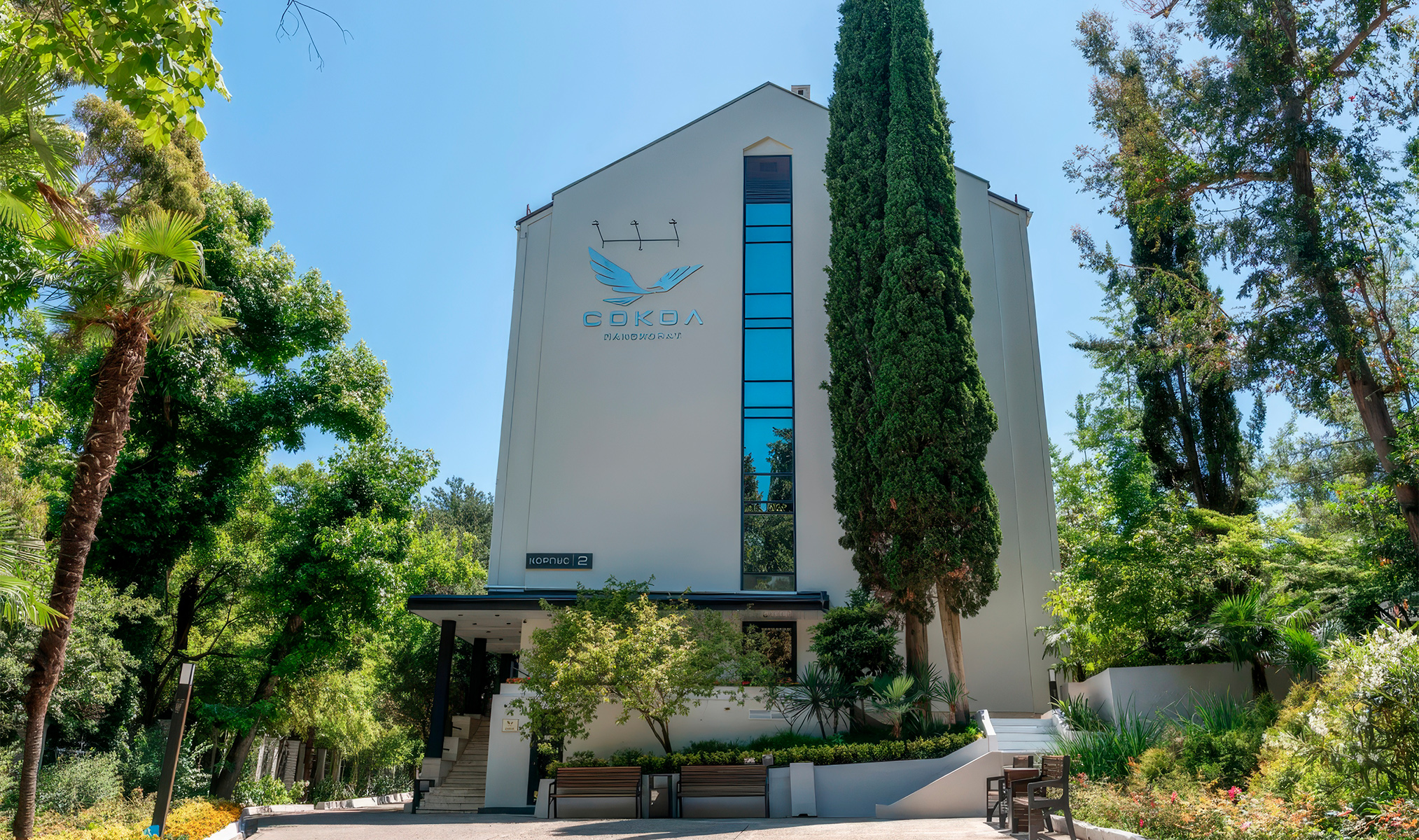 Здание недавно обновили, поэтому внутри ждёт современный ремонт. До моря дойдёшь за 15 минут, а рядом найдёшь все главные развлечения Сочи с кафе и магазинами. При этом в самом отеле тихо: постояльцы пишут, что из-за обилия зелени воздух здесь особенный и дышится очень легко.