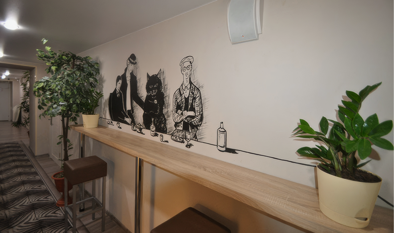 Отель расположен рядом с Патриаршими прудами — тем самым местом, где разворачиваются события романа «Мастер и Маргарита». В интерьерах можно заметить рисунки с фрагментами из произведения и его персонажами, а буквально через дорогу находится музей-театр «Булгаковский дом», работающий в здании, где жил писатель.