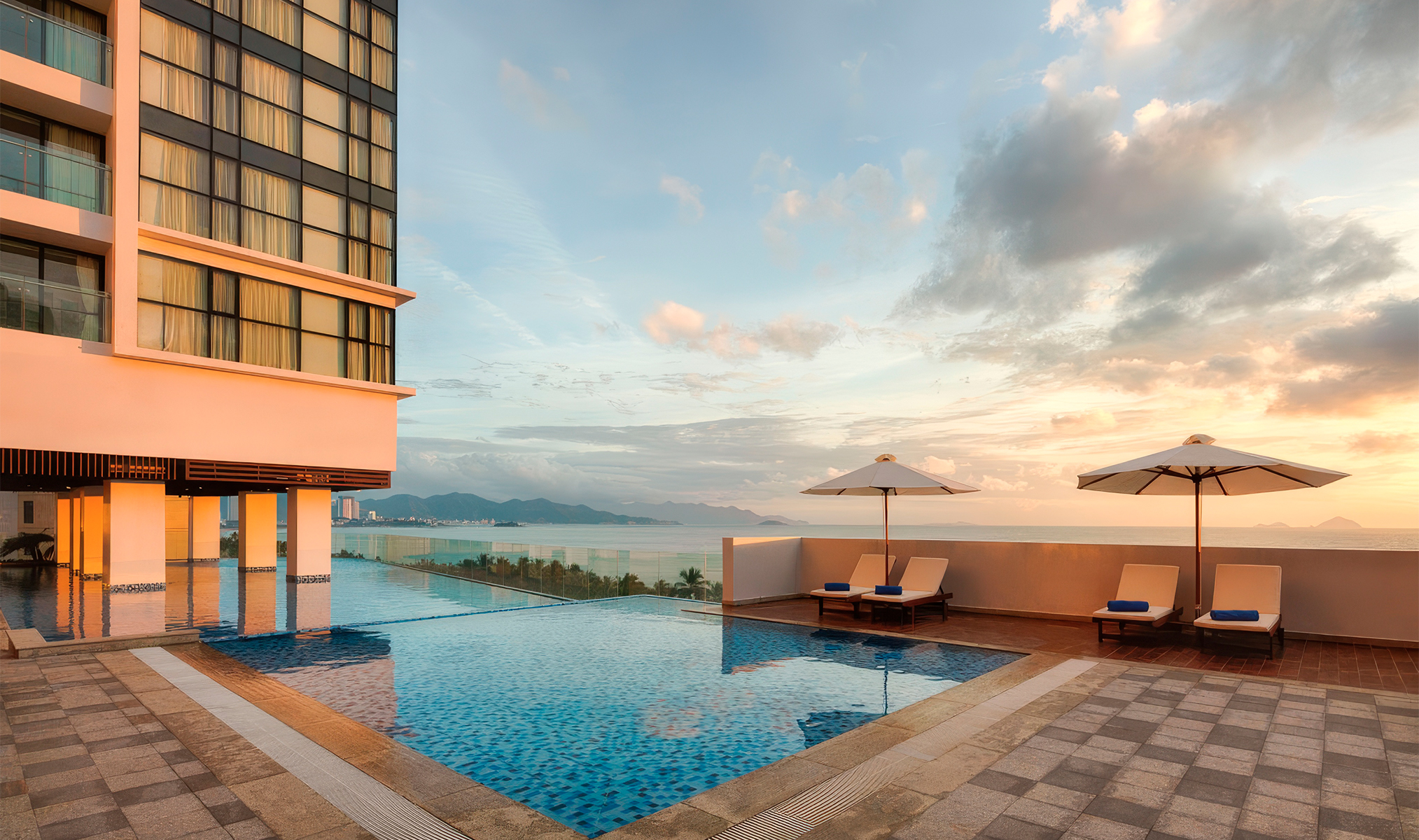 Гости отмечают открытый бассейн с панорамным видом, спа-комплекс и тренажёрный зал. До моря рукой подать: пляж буквально через дорогу, с собственными лежаками и даже бесплатными полотенцами от отеля (что редкость для Нячанга). Большинство локаций находятся в пешей доступности, например, башня в виде лотоса — маст-хэв для первой прогулки.