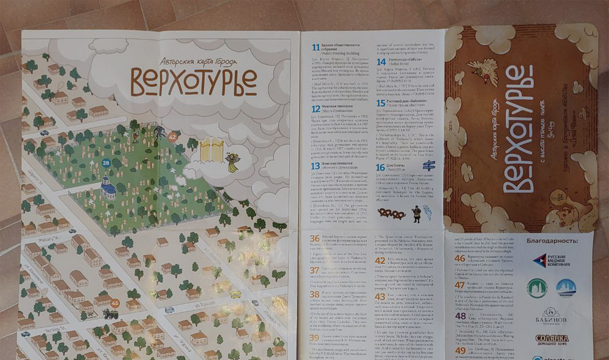 Ещё один классный вариант — авторские и дизайнерские карты. Они содержат занимательные факты о городе и достопримечательностях, советы и рекомендации, а также забавные пасхалки и милые тематические иллюстрации. Например, у креативного брендингового агентства «Дикий филин» есть карты Екатеринбурга, Верхотурья и Дивеево — подтверждаю, гулять с ними одно удовольствие.