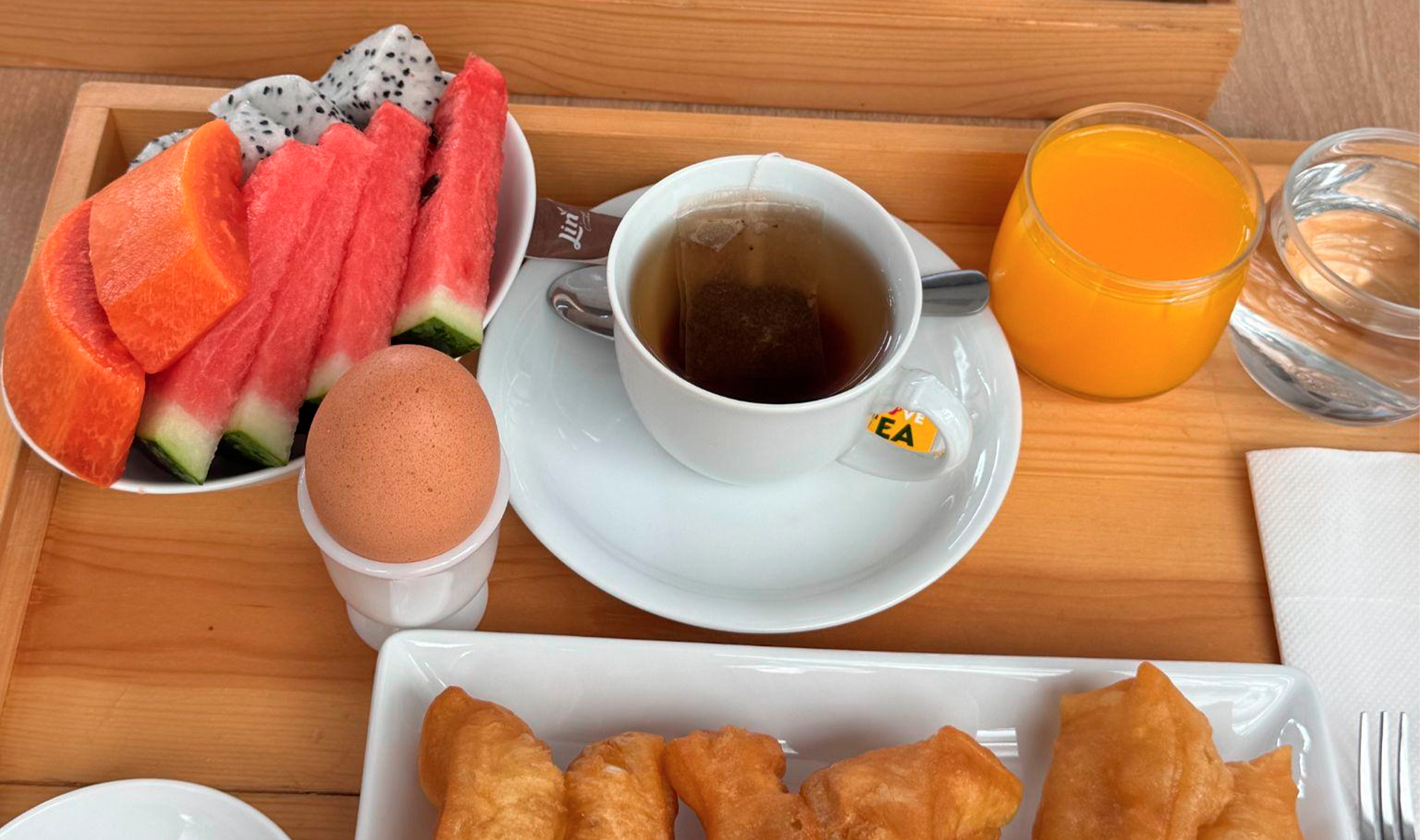 Из минусов — завтраки. Они подаются в виде комбо-набора, который нужно выбирать за день. Среди вариантов основного блюда: супы со свининой или фрикадельками, лапша, пельмени-гёдза, а из более привычного — шарики из теста со сгущёнкой, тост с маслом, хлопья с молоком. Я предпочитаю на завтрак классику вроде яичницы, а её тут не было. Стоимость за ночь — от 5300 руб. с завтраком.