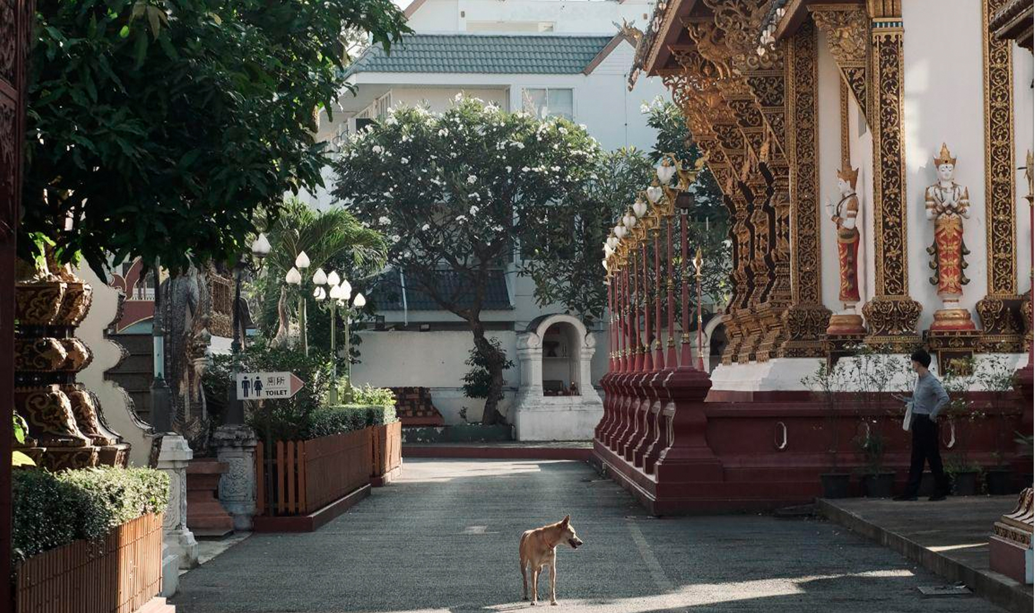 От одной стороны квадрата до противоположной можно дойти примерно за полтора часа. Но гулять здесь легко намного дольше — рассматривать детали, заглядывать во дворы и небольшие лавки. Например, мне особенно понравились тихие дворики с тропическими растениями, украшенные традиционными фонариками.