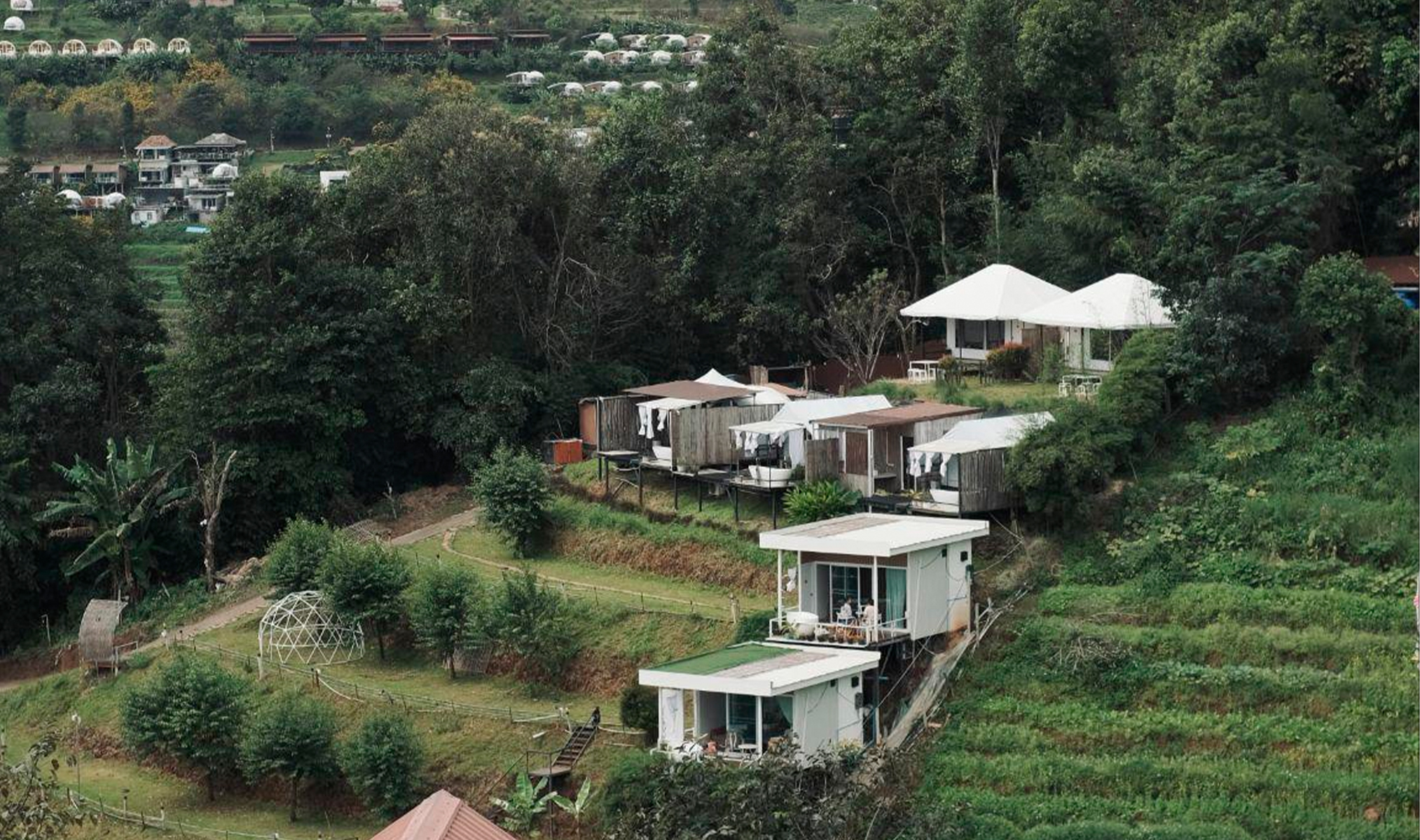 В 40 минутах езды от центра Чиангмая, в горах, находится Мон Джем — место с клубничными плантациями, цветочными садами и смотровыми площадками с красивыми видами на окрестности. Сюда здорово приезжать с ночёвкой — в глэмпинг или палатки.