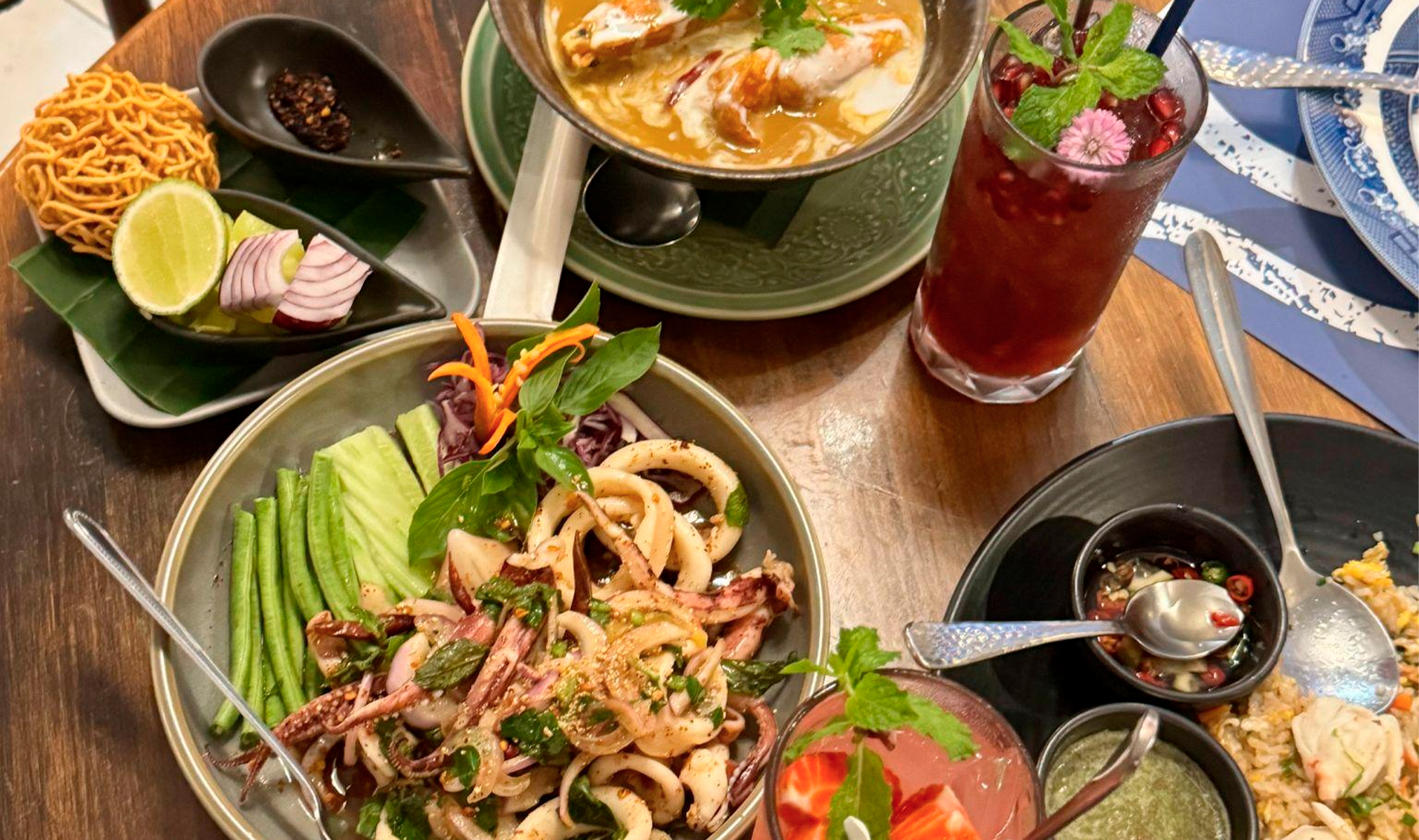 Baan Landai Fine Thai Cuisine — ресторан тайской кухни, который уже несколько лет подряд входит в список рекомендаций «Мишлен». За 4 блюда (рис с крабом, као сой с креветками, острый салат с морепродуктами и лапшу с лососем) и 2 напитка отдали около 1854 батов (4440 руб). Больше всего впечатлило нежнейшее мясо краба. Столик лучше бронировать заранее.