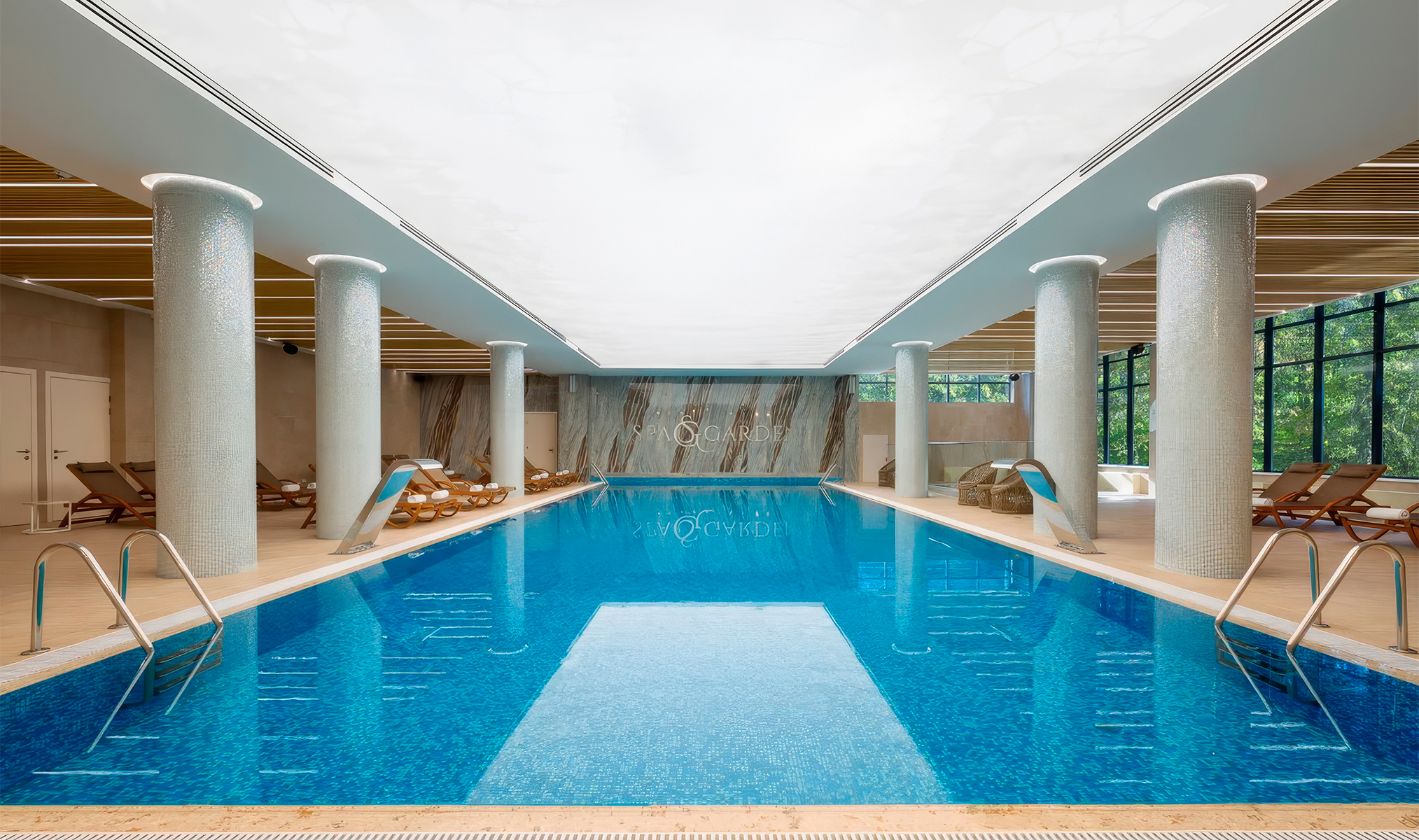 Помимо спа-комплекса на территории есть всесезонные крытые и подогреваемые бассейны.