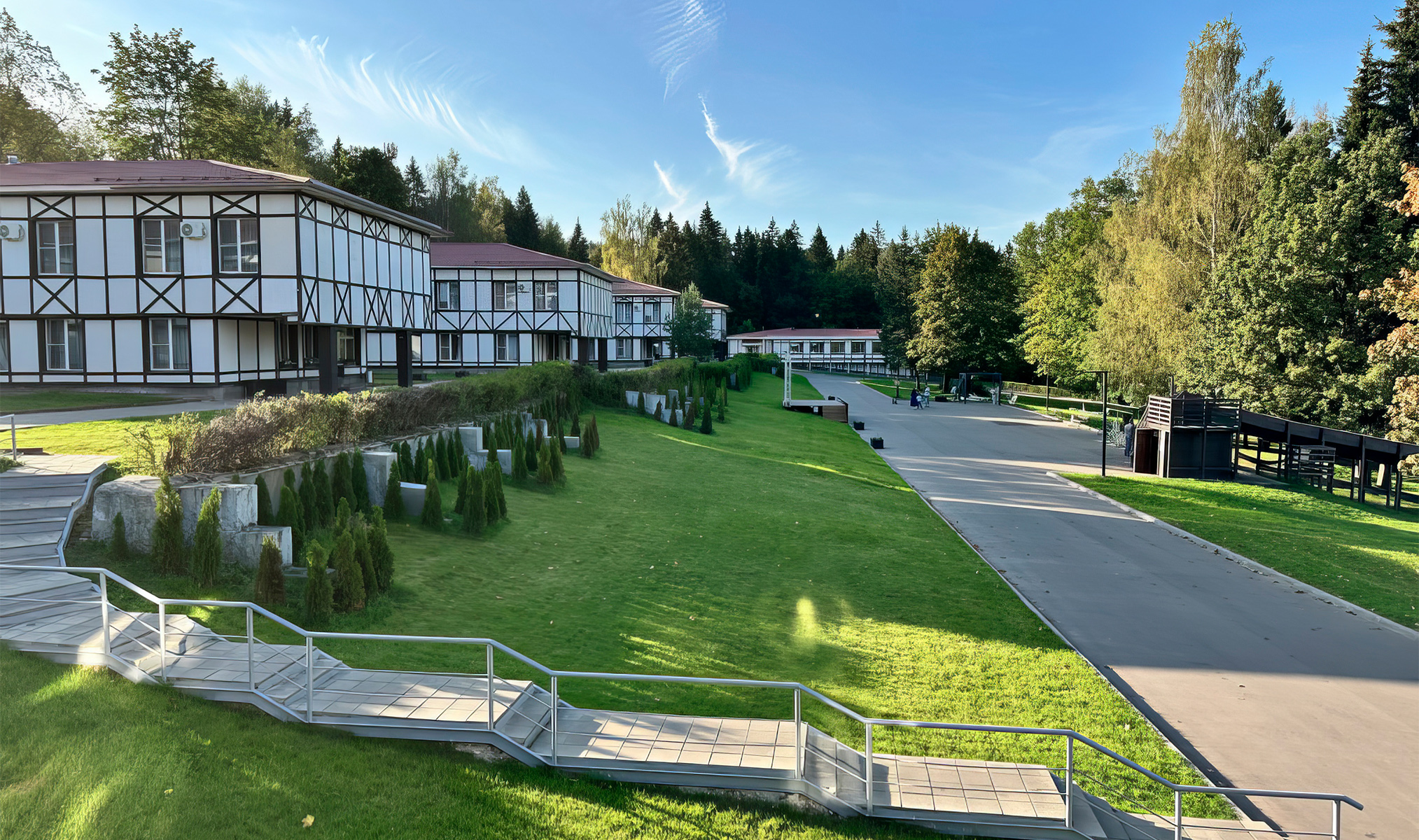 Пятизвёздочный спа-отель на берегу Истринского водохранилища, окружённый лесом.