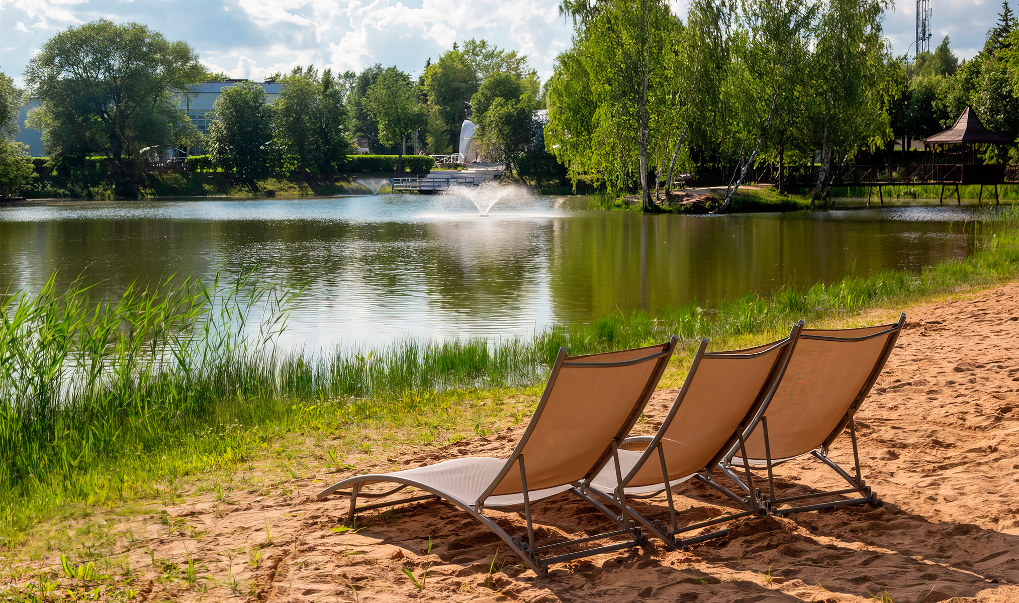 Главная фишка комплекса — собственное озеро с песчаным пляжем.