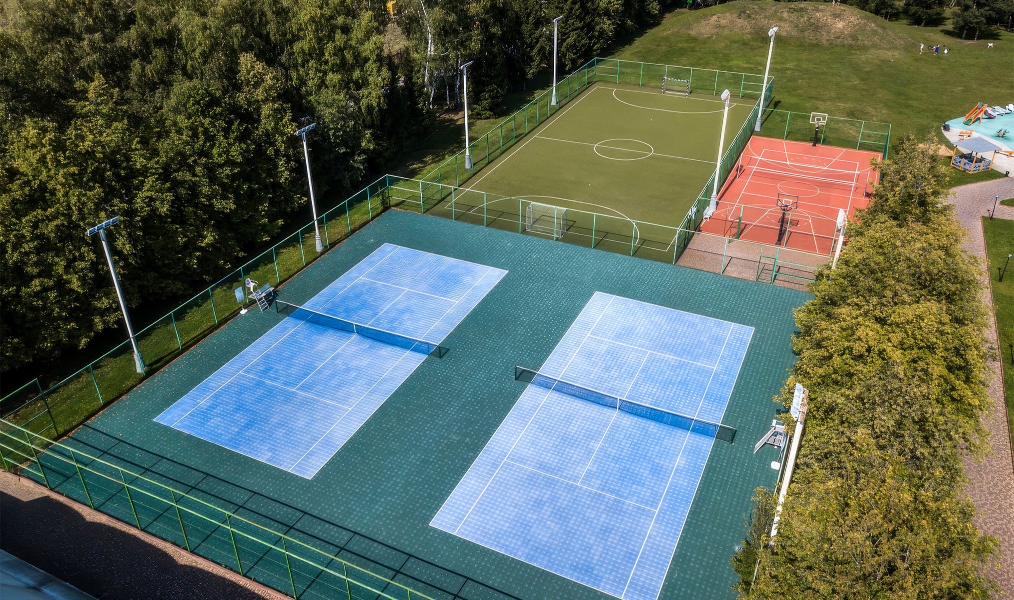 Здесь оборудованы теннисные корты, баскетбольная площадка и поле для мини-футбола.