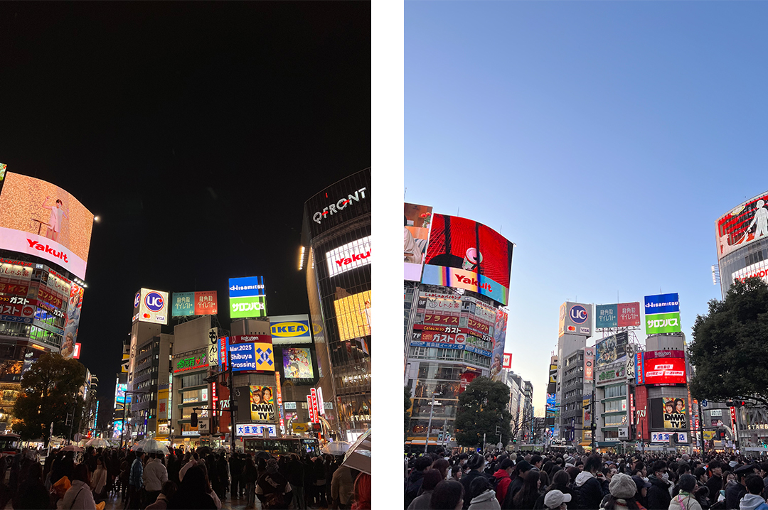 Сибуя вечером и днём. Фото: Михаил Кашляк