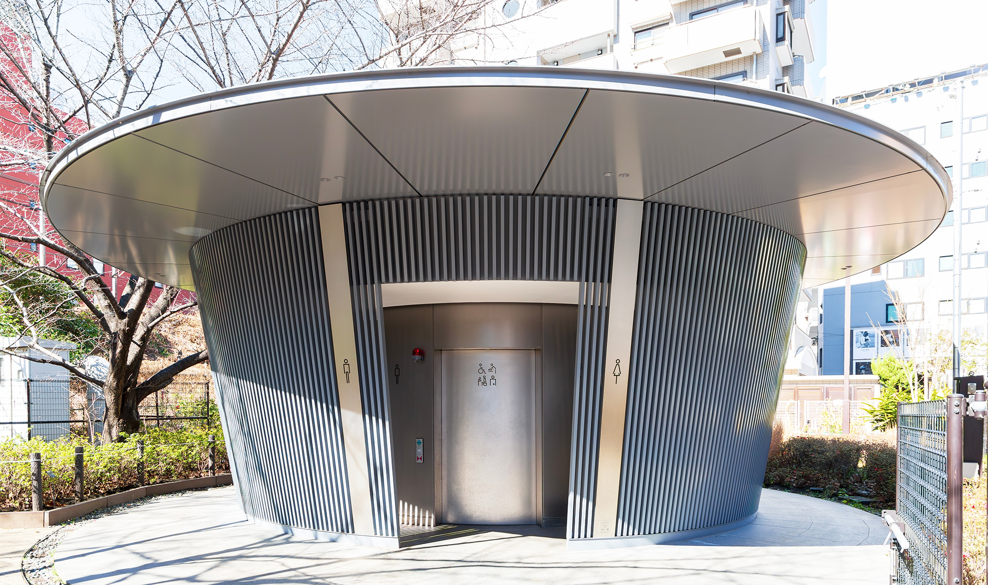 Проект вдохновлён оригата — традиционным японским способом декоративной упаковки подарков. Форма и фасад здесь — как жест заботы: не просто место, чтобы справить нужду, а маленький ритуал внимания к человеку.