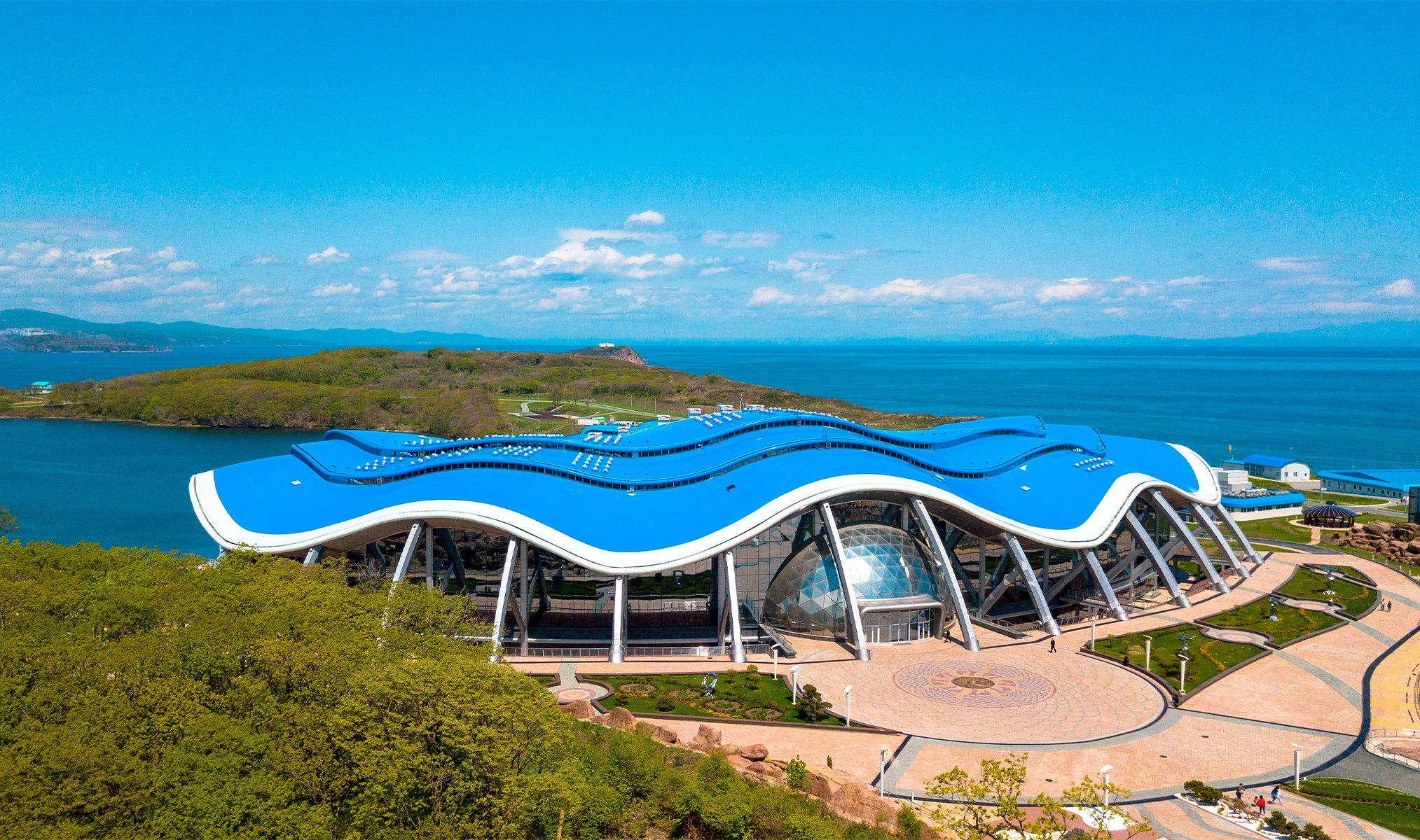 Приморский океанариум на острове Русский. Один из крупнейших в России. Здание снаружи напоминает гигантскую раковину, а внутри живут акулы, скаты, тропические рыбы и даже белухи. Можно совместить с прогулкой по кампусу Дальневосточного университета.