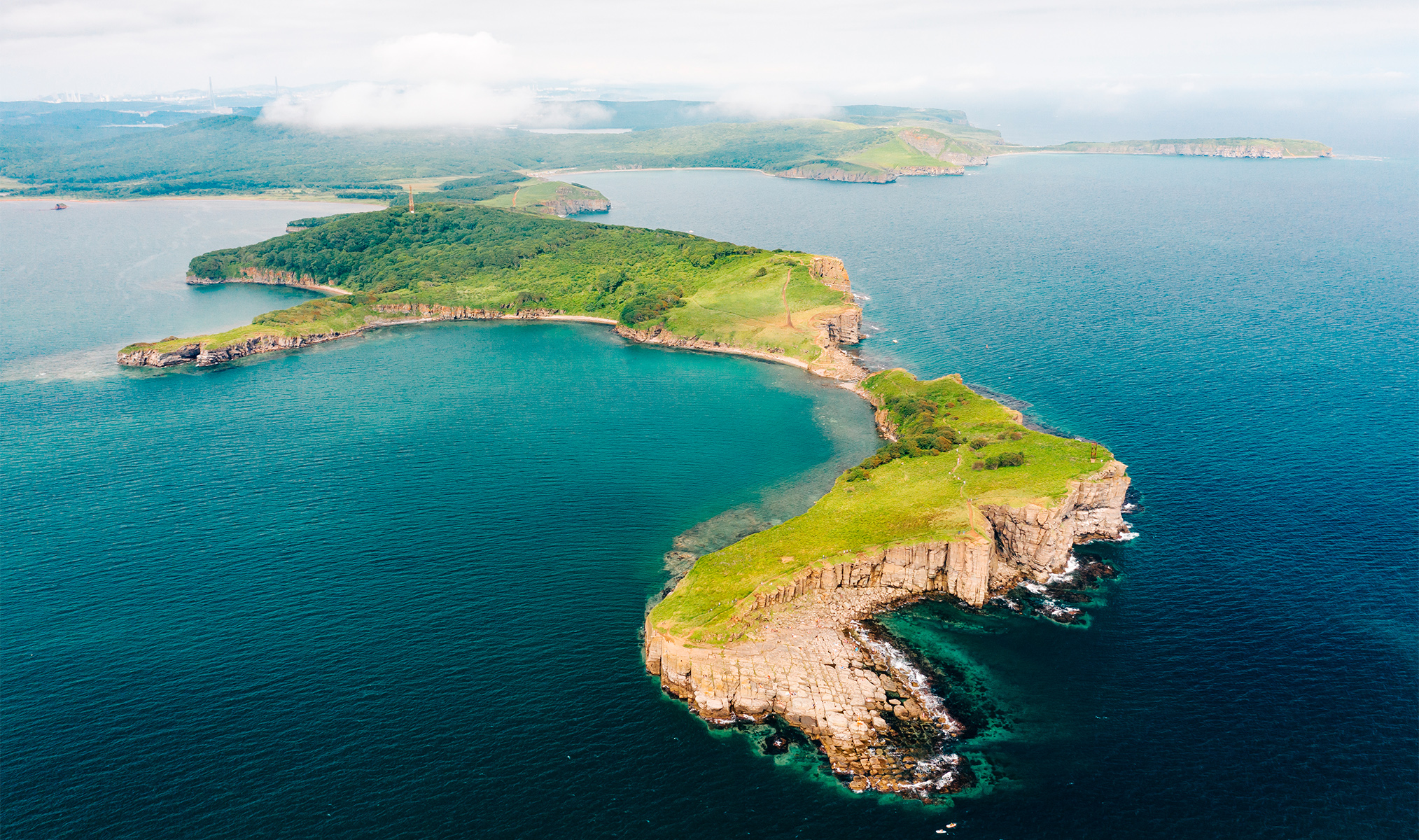 Мост, кампус ДВФУ, океанариум и бухты с прозрачной водой. Летом сюда едут за пляжами и трекингом по сопкам. Отличный вариант, если хочется природы и пространства. Удобнее будет с машиной.